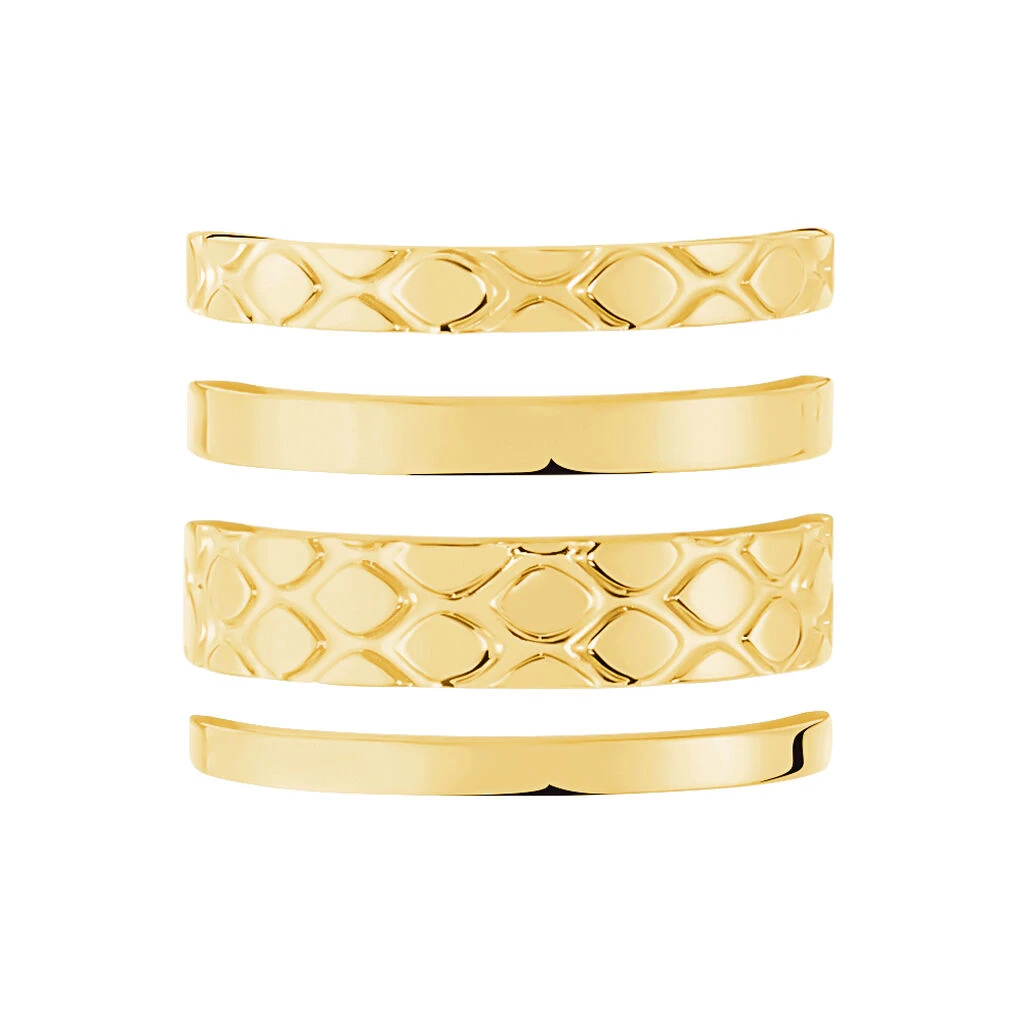 Bague Acier Ouverte 4 Anneaux Larges Ajoures Alternes Lisse Et Reptile
