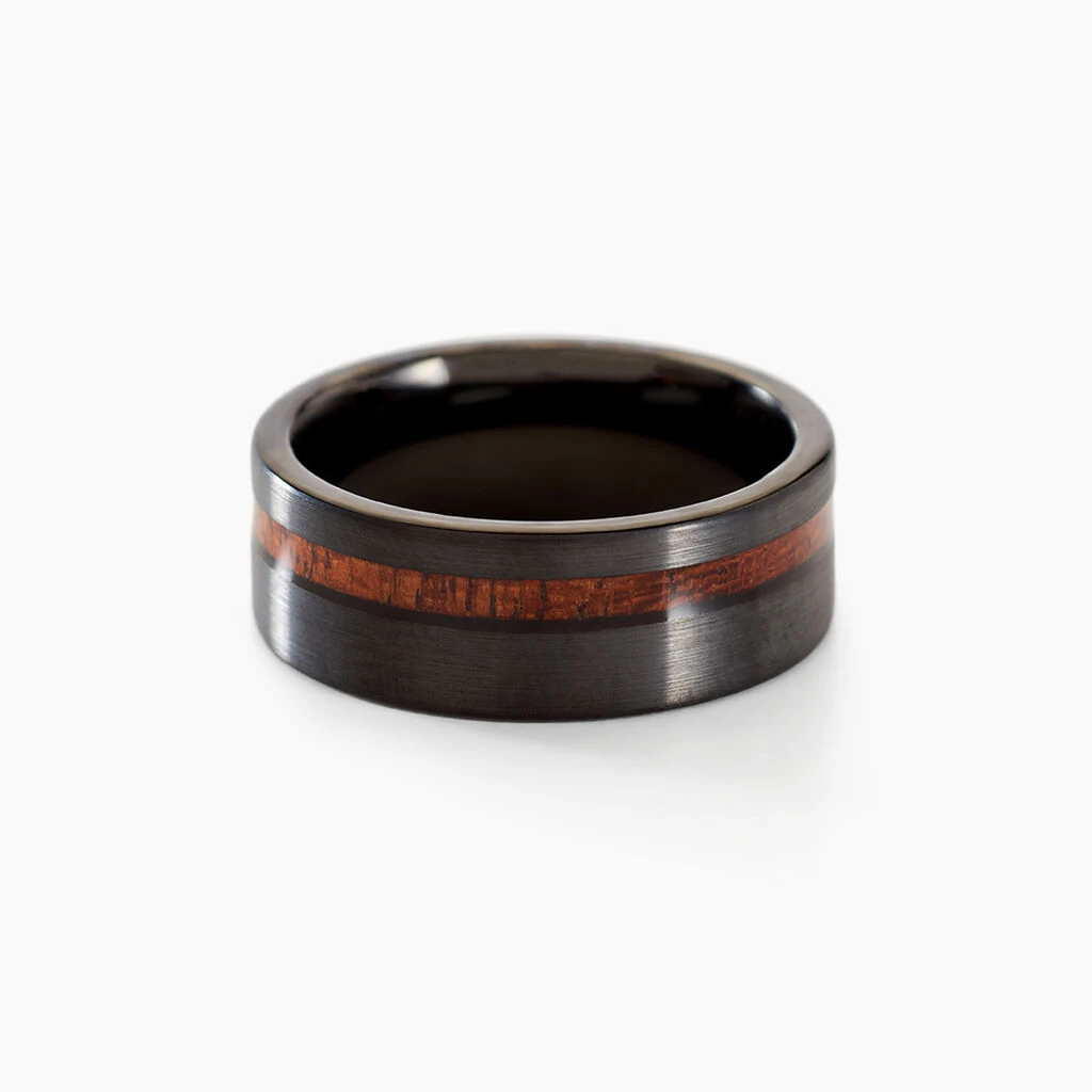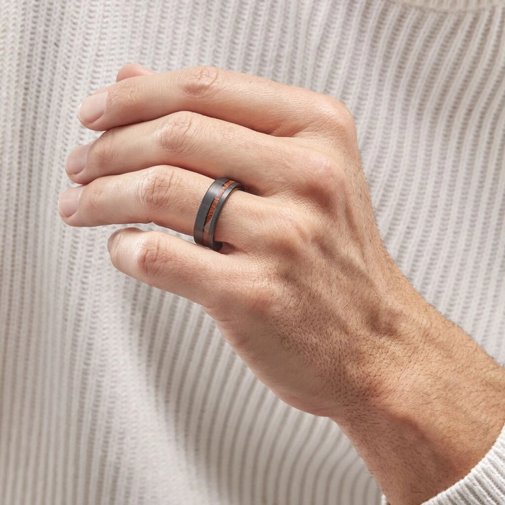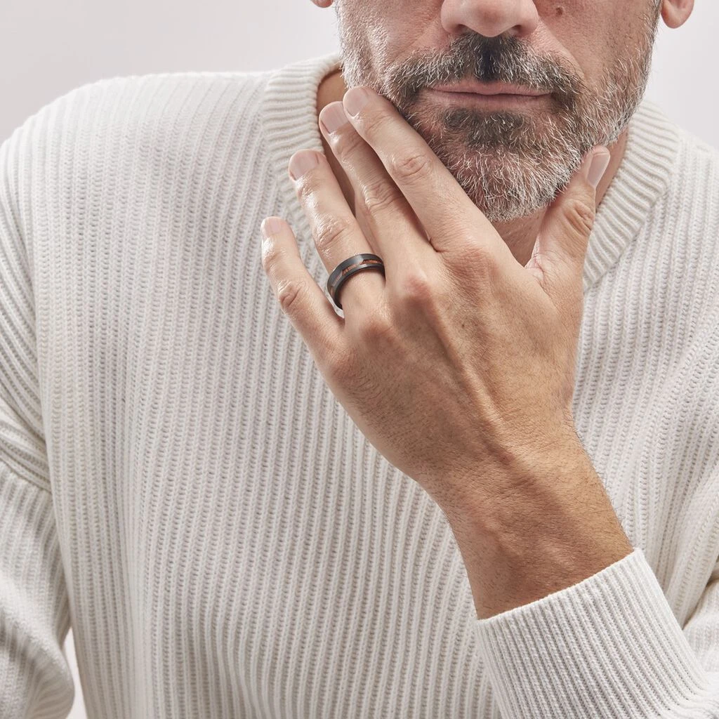 Bague Acier Noir Rang Effet Bois Bords Larges