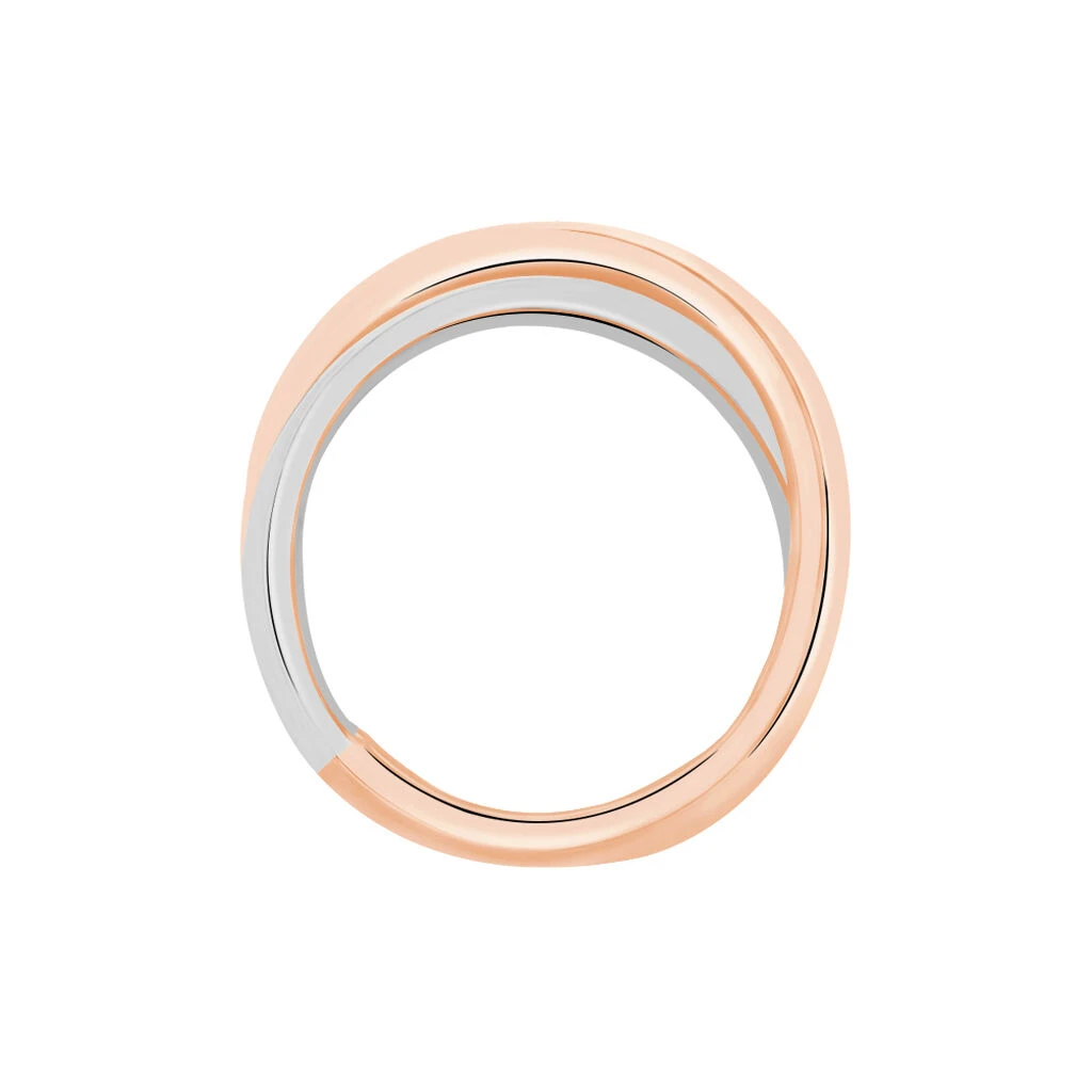 Bague Or Bicolore 375/1000 Rose Et Blanc Anneaux Croises Semi Pavage Diamants