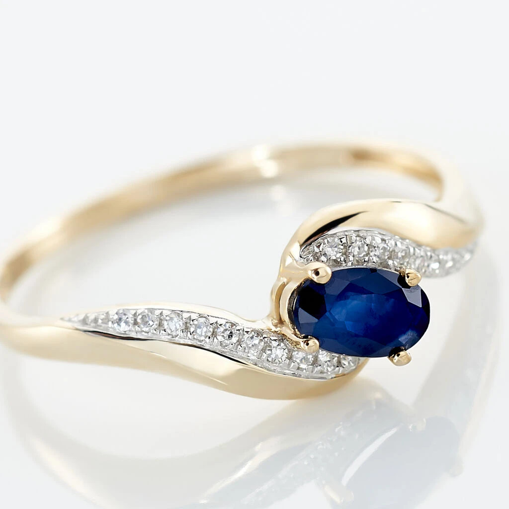 Bague Or Jaune 375/1000 Saphir Incliné 0.33ct Serti Griffes Et Diamants