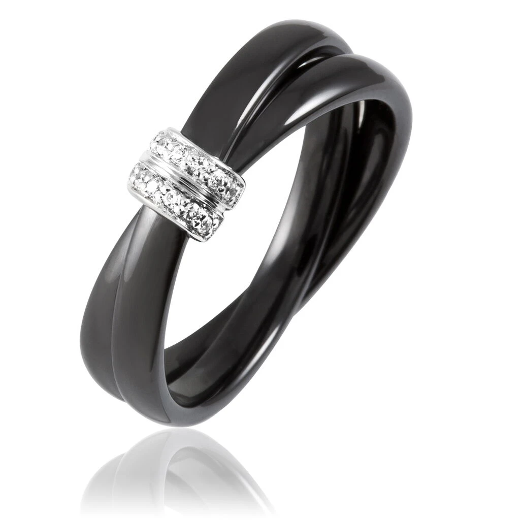 Bague Ceramik Design Argent Blanc Oxyde De Zirconium Et Céramique