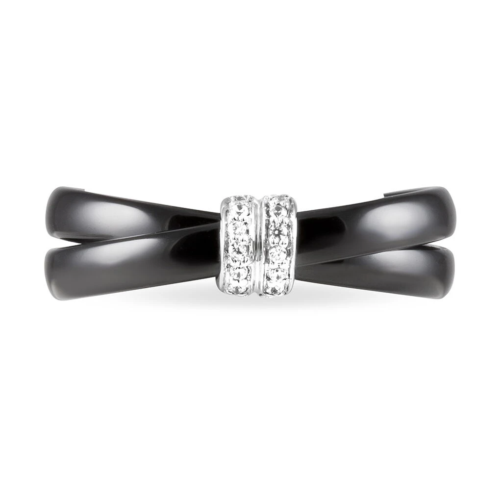 Bague Argent 925/1000 Céramique Lisse Anneaux Entrelacés Oxyde