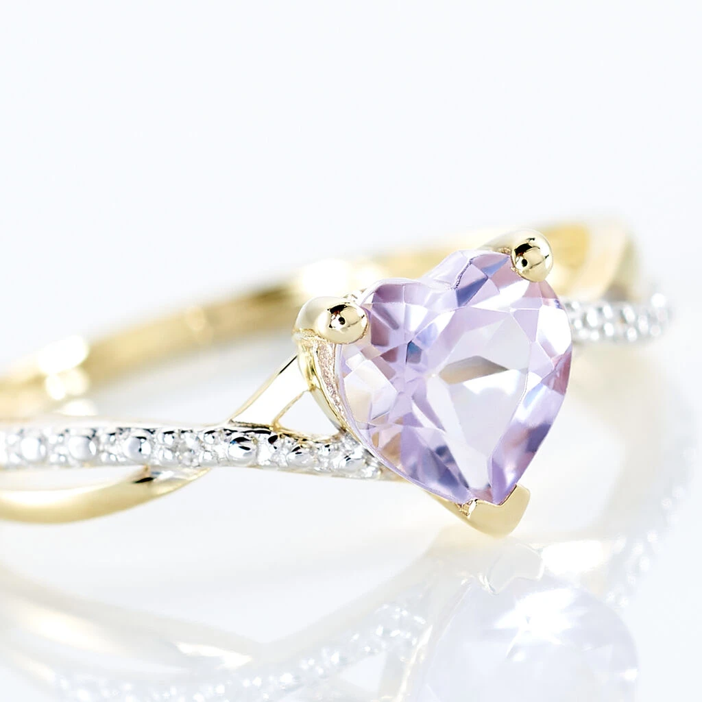 Bague Or Jaune 375/1000 Coeur Amethyste Violette 0.9ct Et Oxydes De Zirconium