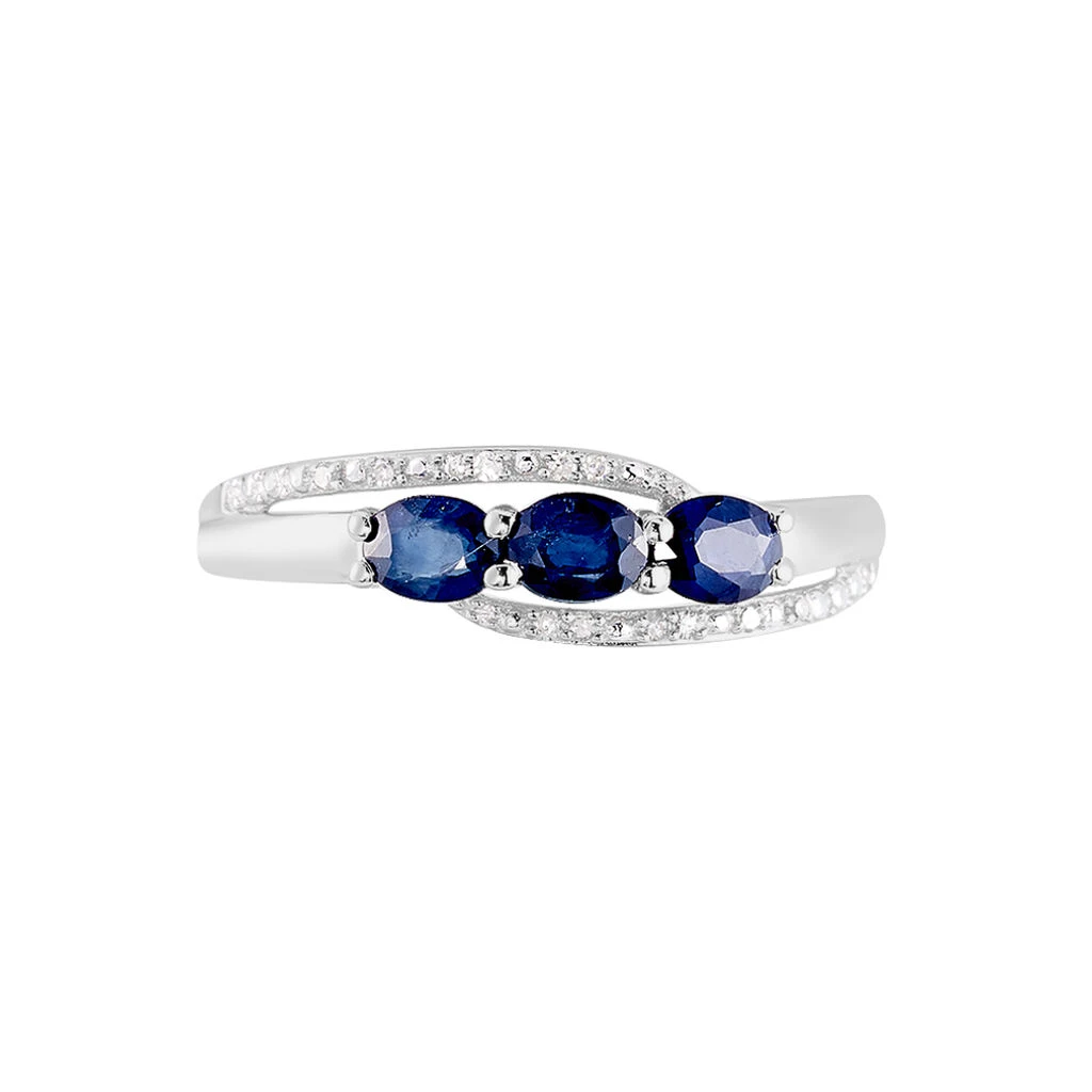 Bague Or Blanc 375/1000 Comete Trilogie Saphir Avec Diamants Blancs
