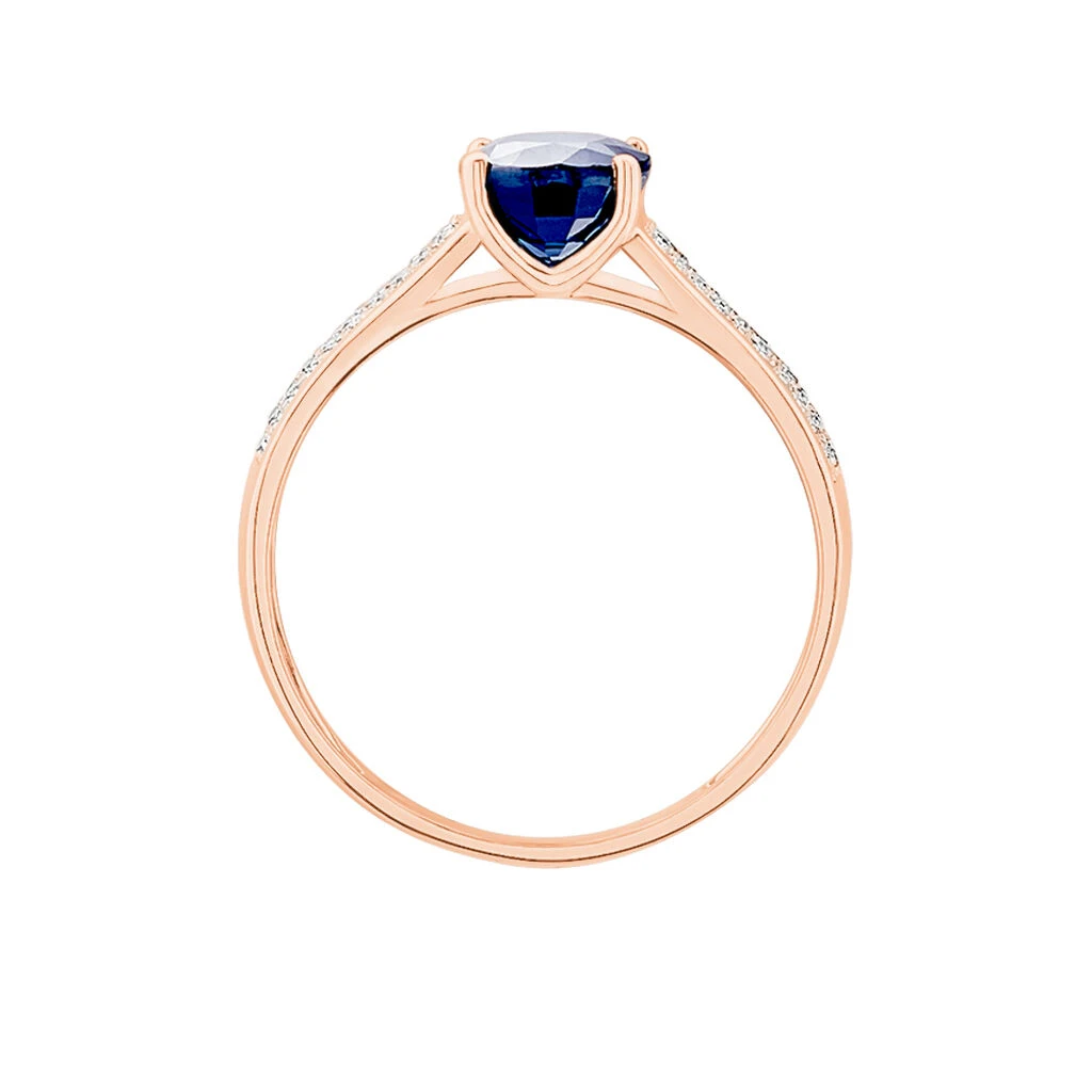 Bague Or Rose 375/1000 Saphir Oval Accompagne Diamants Gm