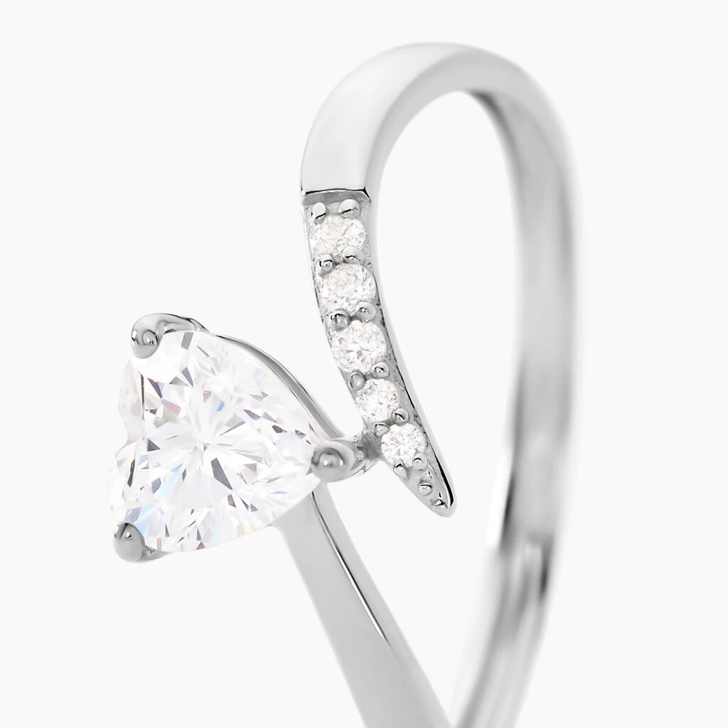 Bague Or Blanc 375/1000 Oxyde De Zirconium Forme Cœur Et Oxydes De Zirconium