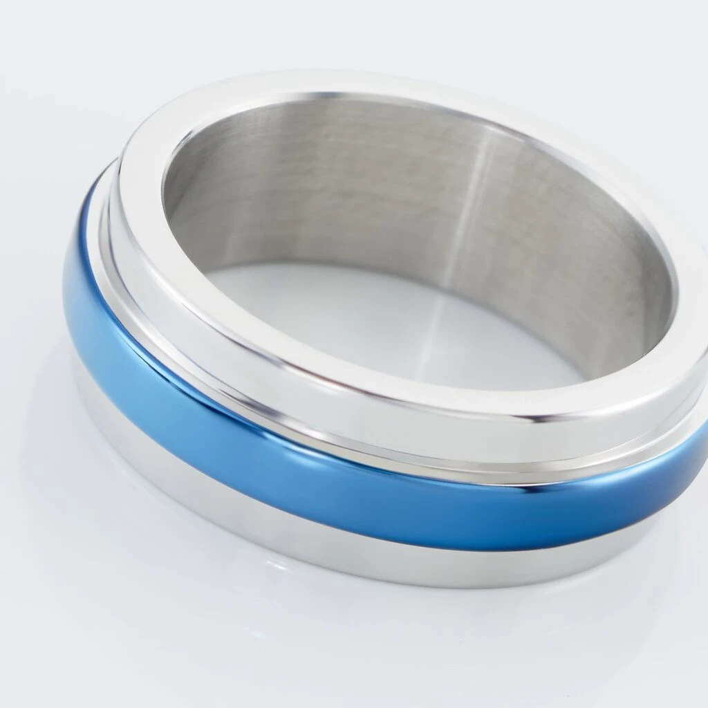 Bague Acier Bicolore Bleu Et Blanc Tour Complet