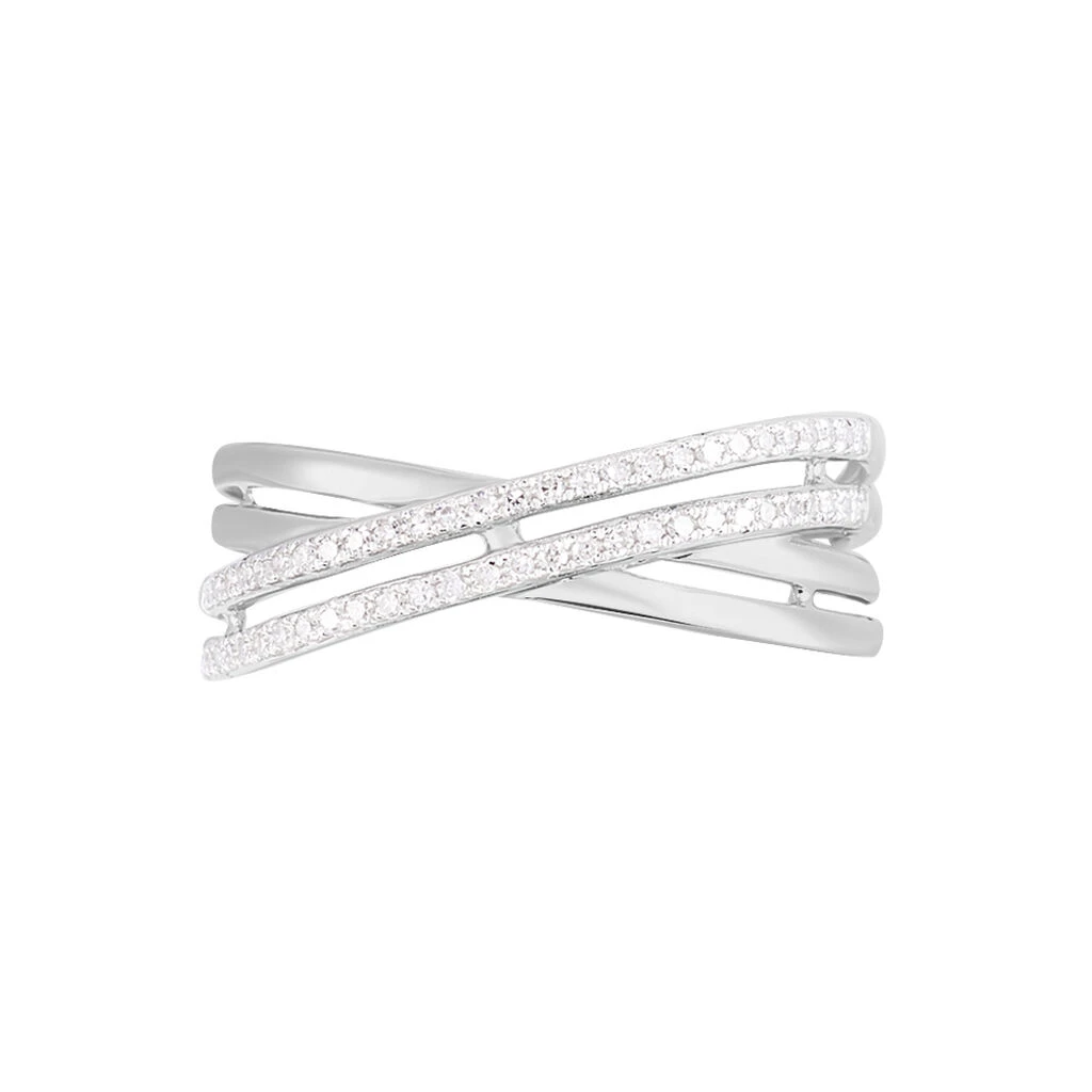 Bague Or Blanc 375/1000 Motif Entrelace Diamants