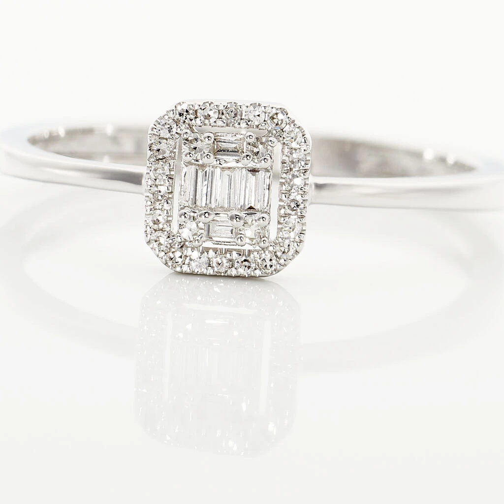 Bague Or Blanc 375/1000 Forme Carrée Diamants Baguettes 0.09cts Pm