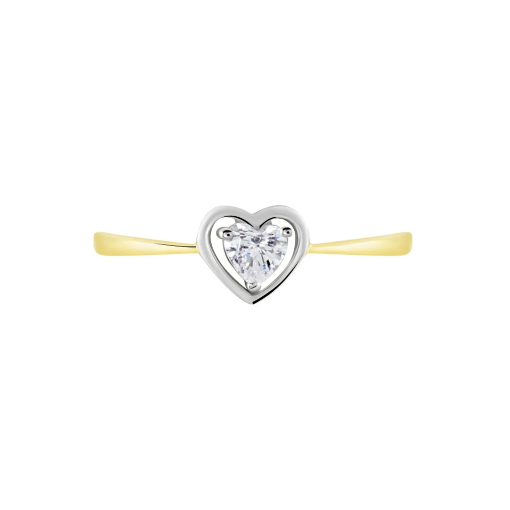 Bague Or Bicolore 375/1000 Forme Cœur Et Oxyde De Zirconium Central