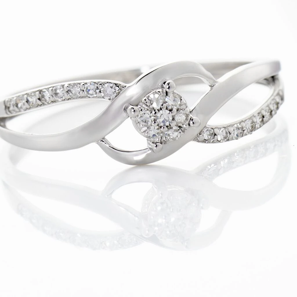Bague Or Blanc 375/1000 Multipierres Diamants 0.045cts