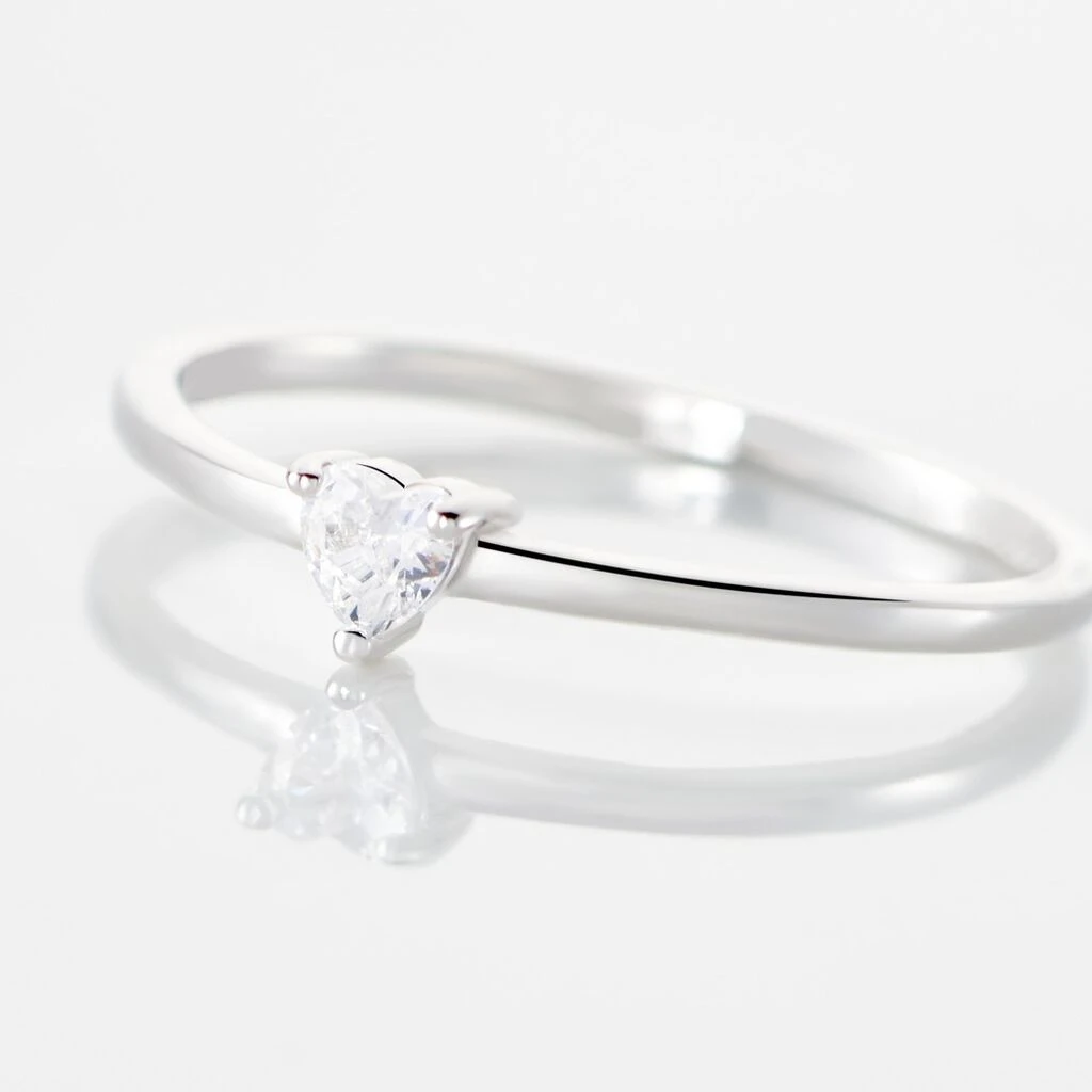 Bague Solitaire Argent Blanc 925/1000 Coeur Serti Griffes Oxyde De Zirconium