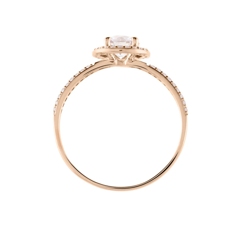 Bague Or Rose 375/1000 Oxyde De Zirconium Central 4 Griffes Entourage Oxydes De Zirconium Corps De Bague Accompagne Oxydes