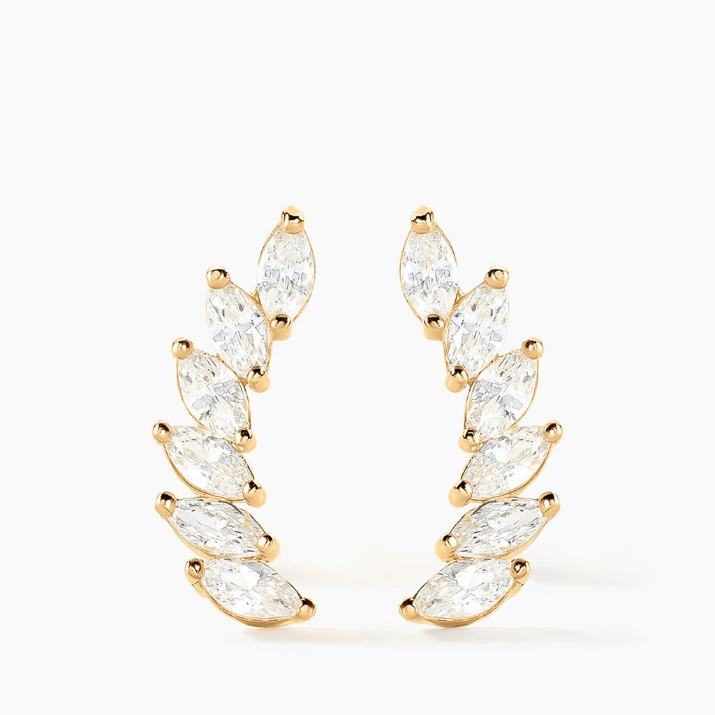 Bijoux D’oreilles Or Jaune 375/1000 Multi Navettes Et Oxydes De Zirconium