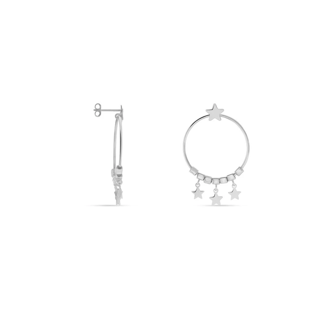 Boucles D’oreilles Argent 925/1000 Cubes Etoiles Dia 25mm