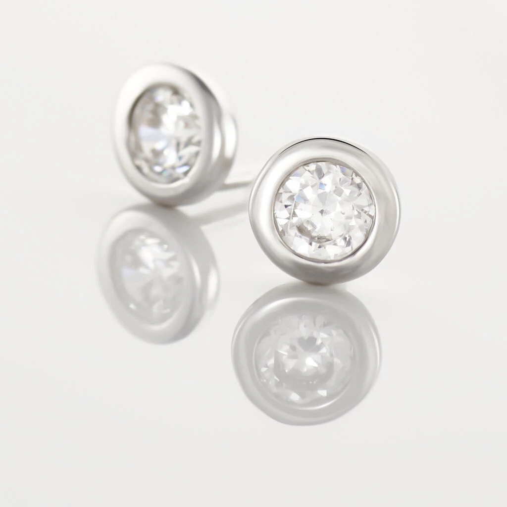 Boucles D’oreilles Puces Argent Blanc 925/1000 Oxydes De Zirconium Sertis Clos 4mm