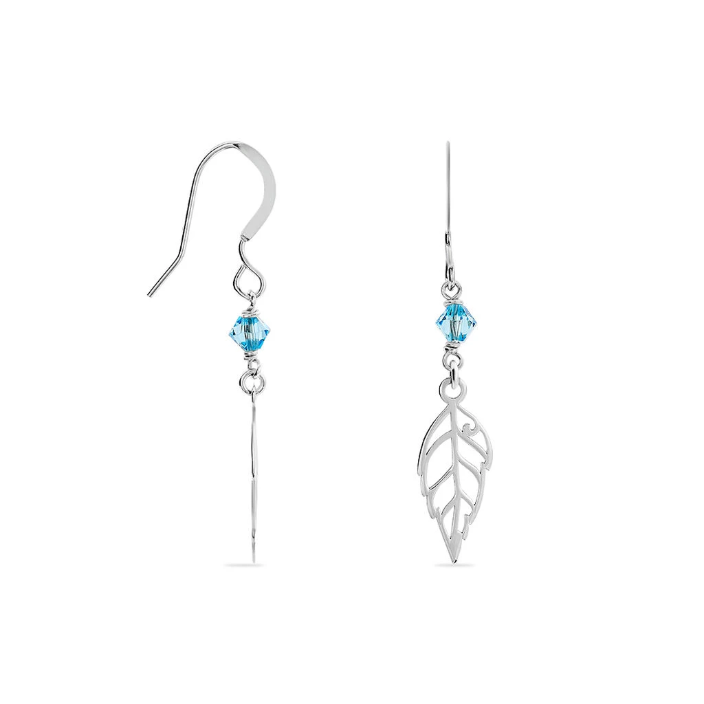 Boucles D’oreilles Pendantes Argent Blanc 925/1000 Feuilles Pierres Bleues