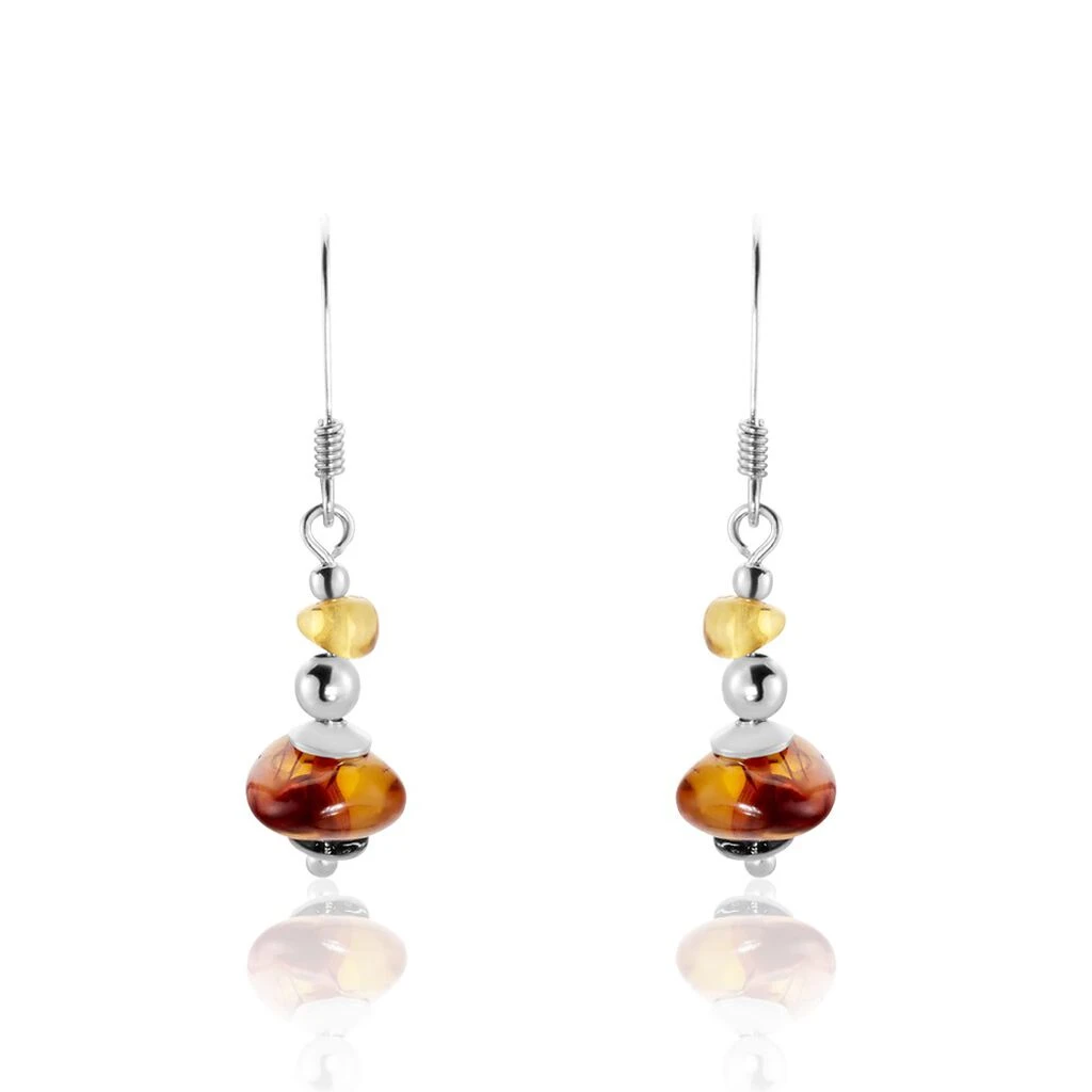 Boucles D’oreilles Pendantes Argent Blanc Ambre