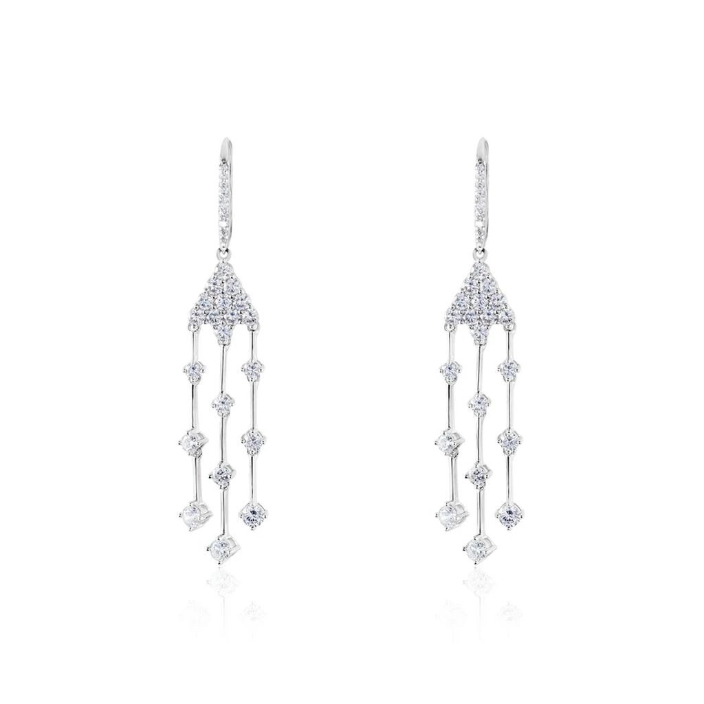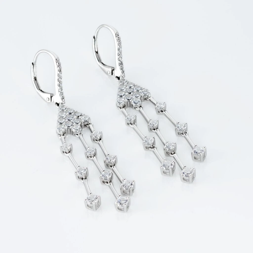 Boucles D’oreilles Pendantes Argent Blanc 925/1000 Triple Rangs Oxydes De Zirconium Fermeture Dormeuses