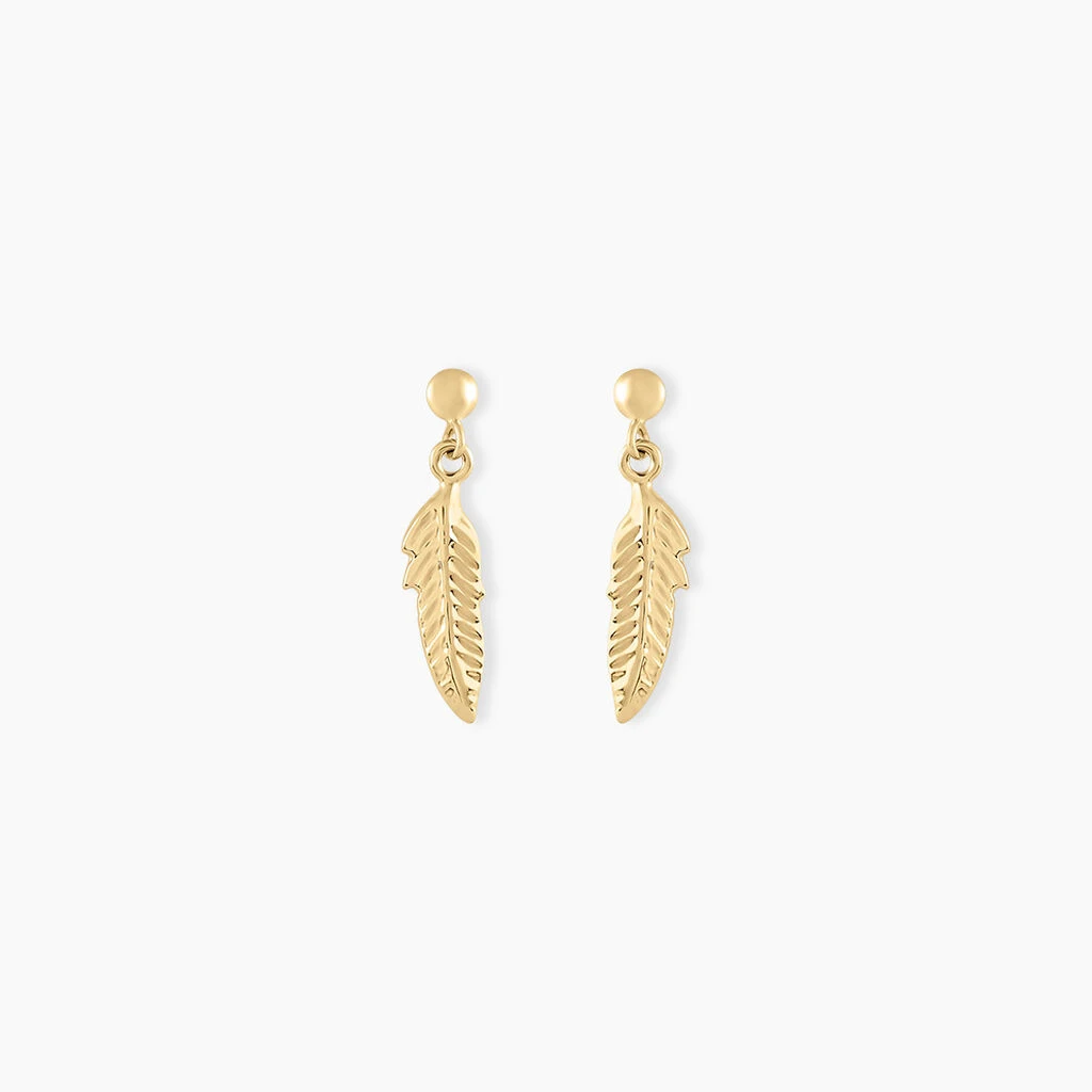 Boucles D’oreilles Or Jaune 375/1000 Pendantes Motifs Plumes