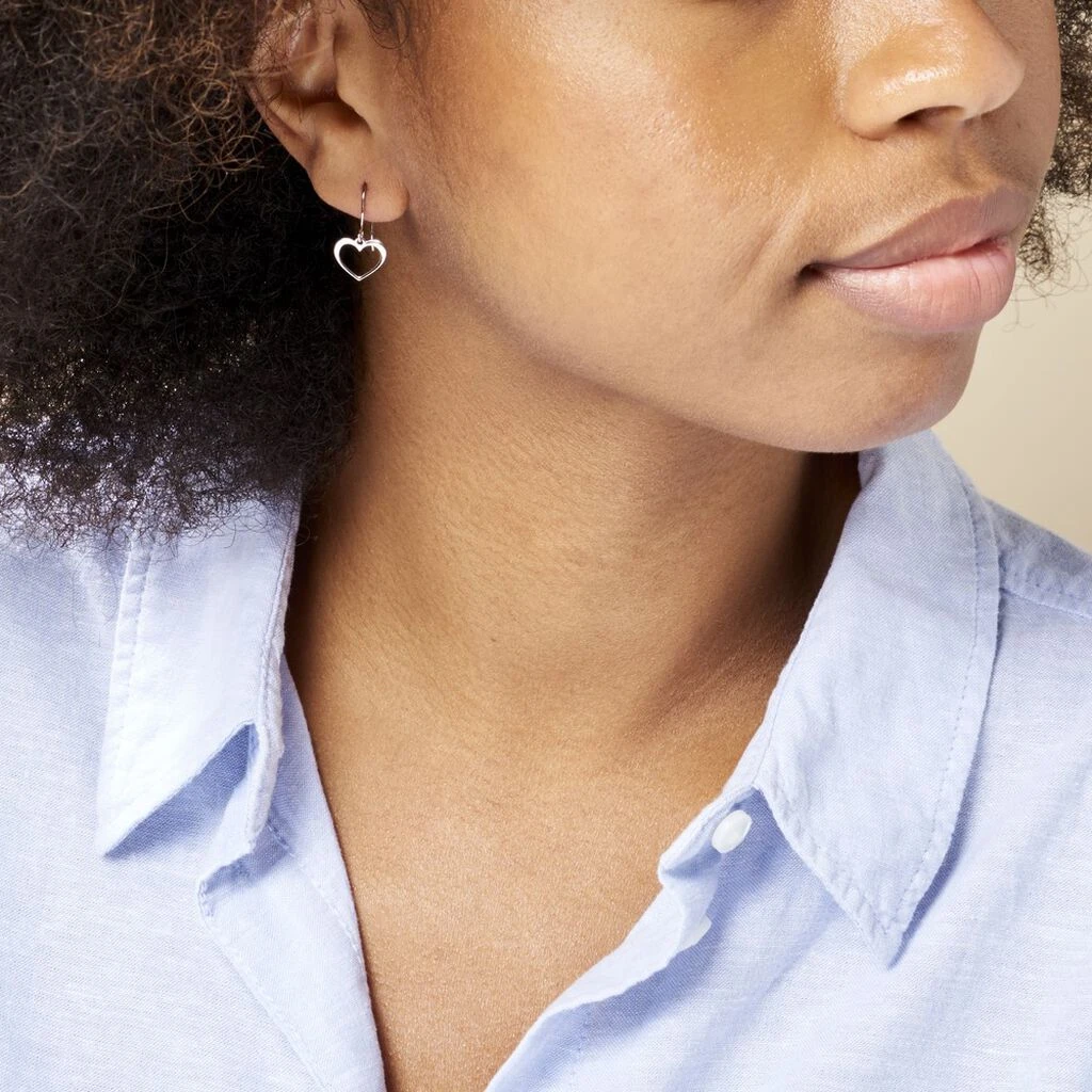 Boucles D’oreilles Pendantes Argent Blanc 925/1000 Coeurs Ajoures