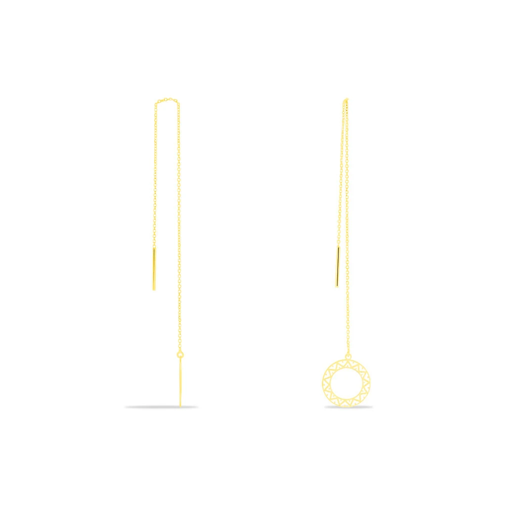 Boucles D’oreilles Or Jaune 375/1000 Double Pendantes Forme Esprit Oriental Chaine Maille Jaseron