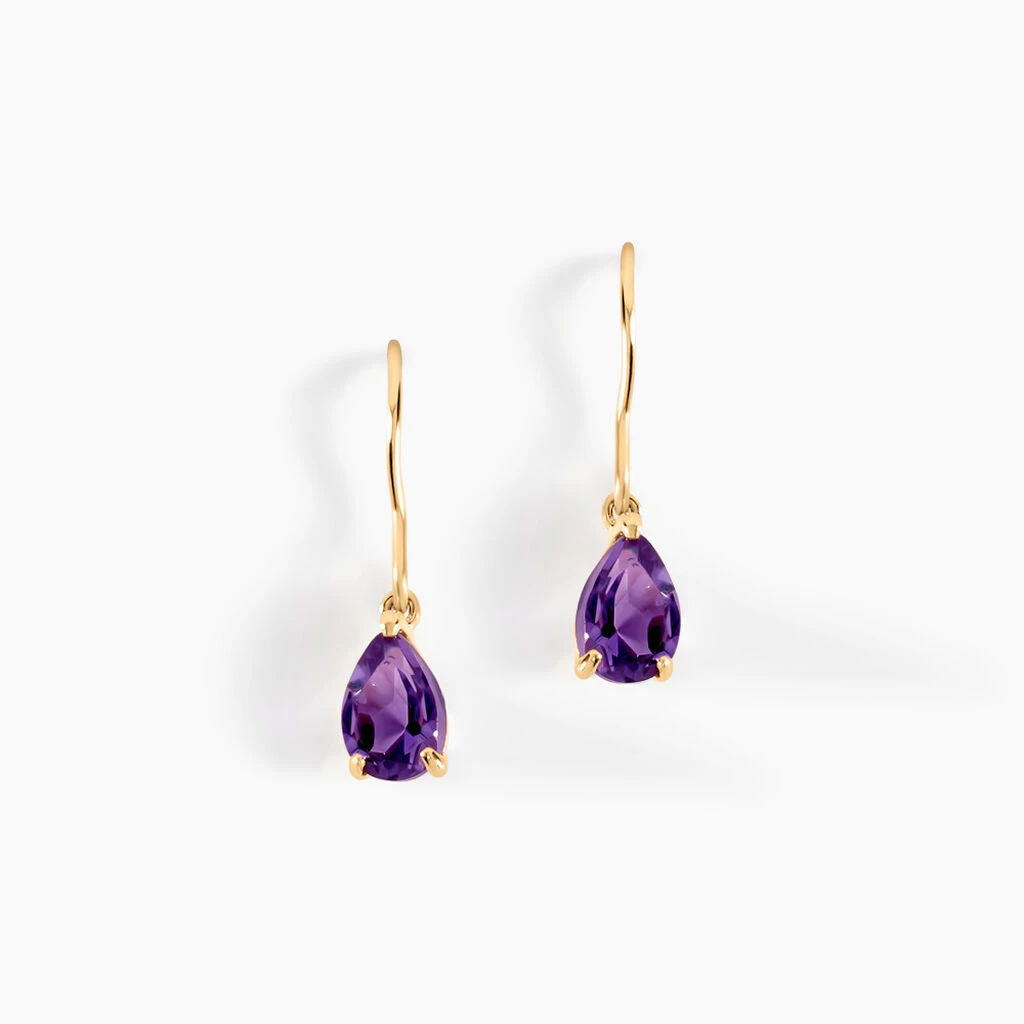 Boucles D’oreilles Pendantes Kalyne Or Jaune Amethyste