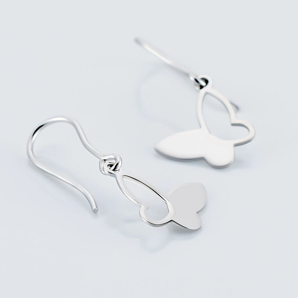 Boucles D’oreilles Pendantes Argent Blanc 925/1000 Papillons