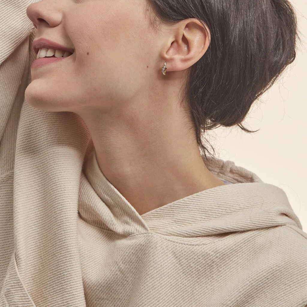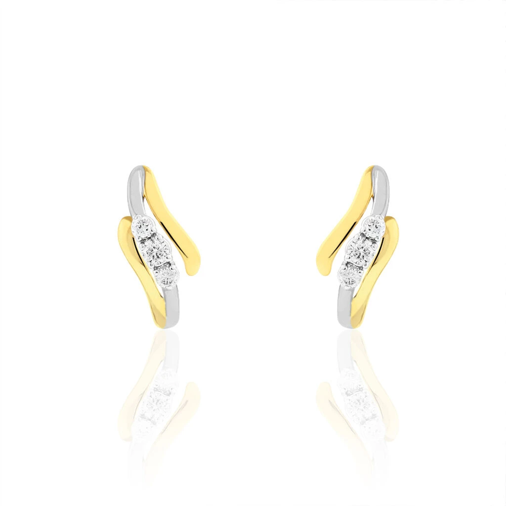 Boucles D’oreilles Or Bicolore 375/1000 Trilogie Vague Diamants 0.122cts
