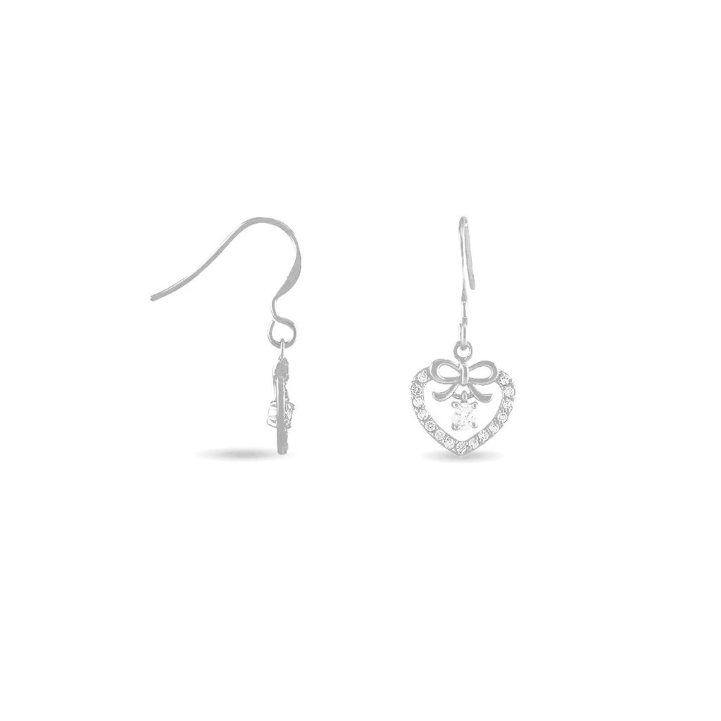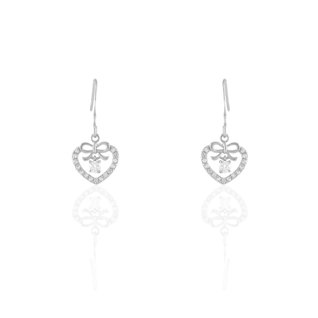 Boucles D’oreilles Argent 925/1000 Pendantes Cœur Nœud Et Oxyde