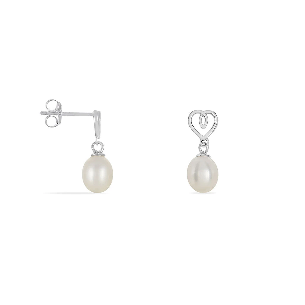 Boucles D’oreilles Argent Blanc 925/1000 Coeurs Perles De Culture Nacres 6-6.5mm