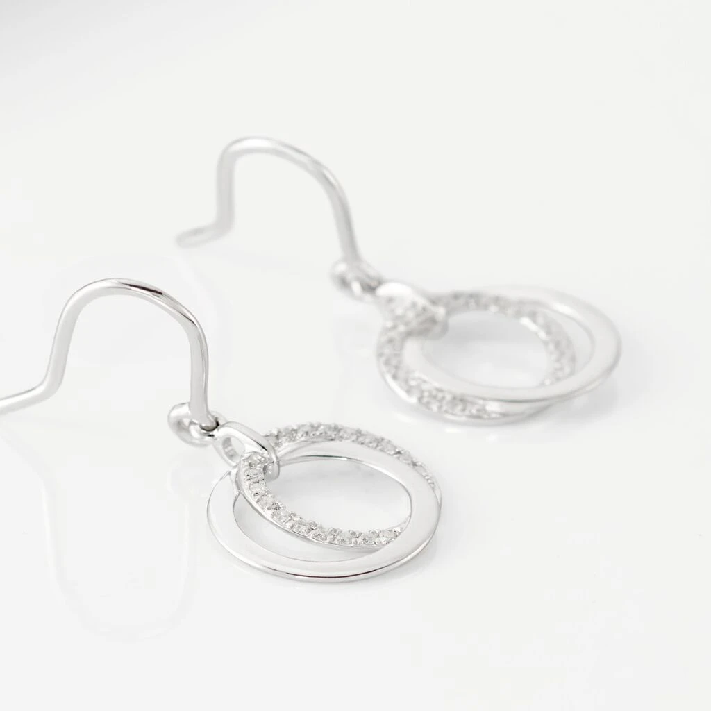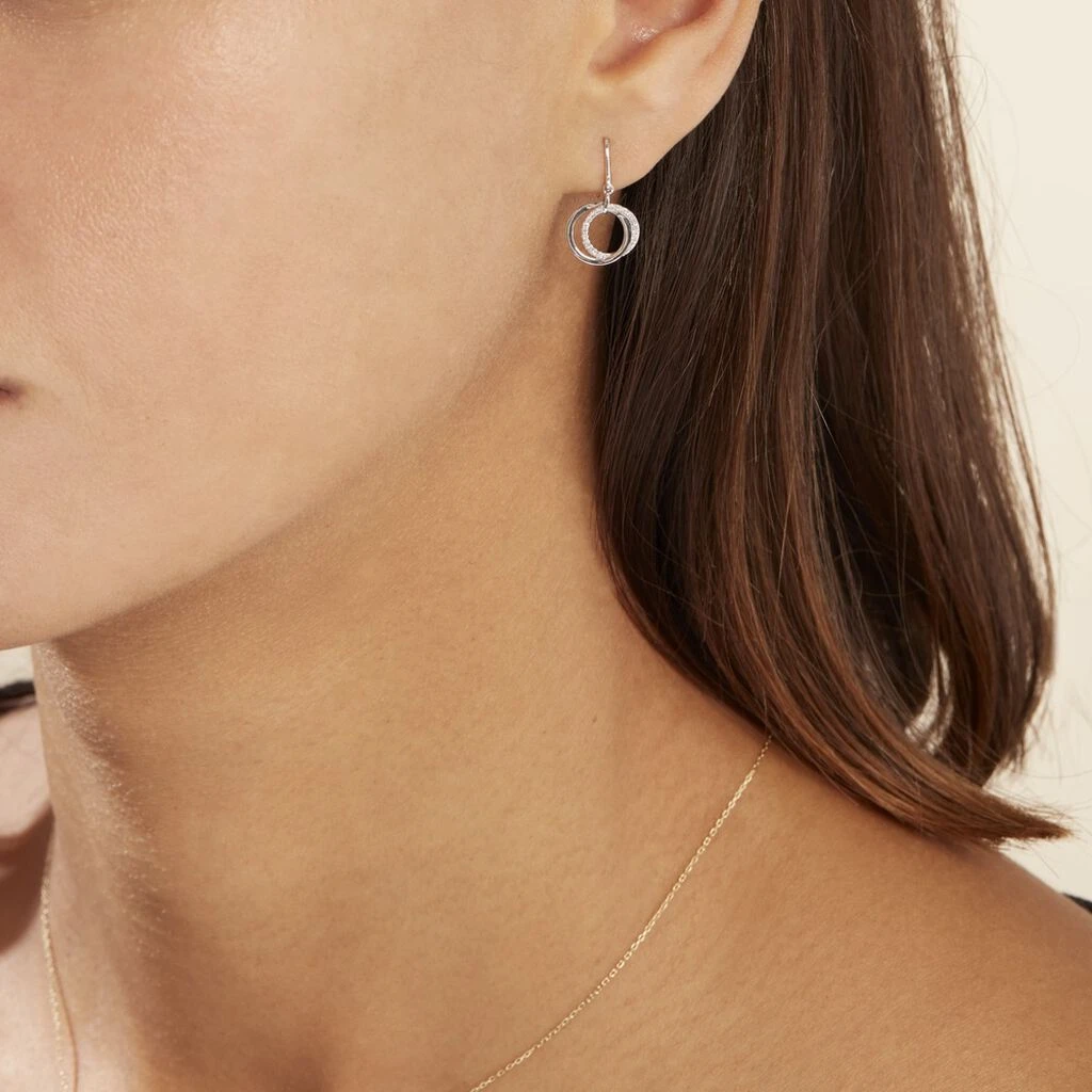 Boucles D’oreilles Pendantes Or Blanc 375/1000 Forme Cercles Entrelaces Diamants