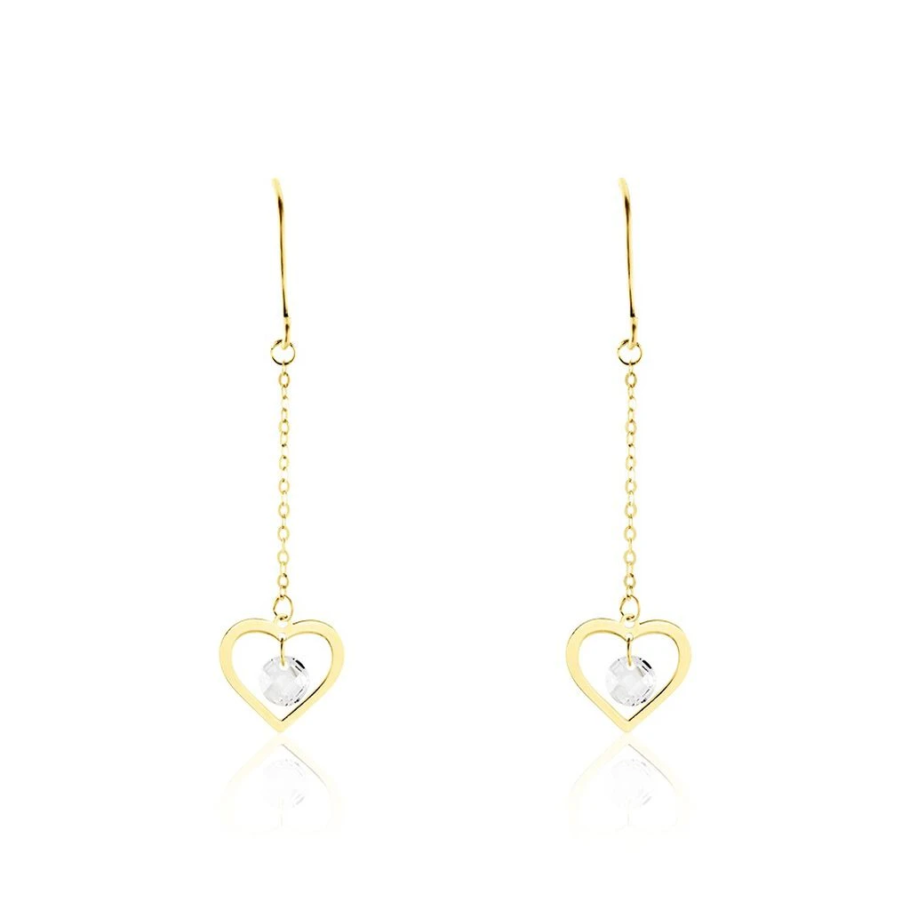 Boucles D’oreilles Pendantes Or Jaune 375/1000 CĹ“ur Ajoure Et Oxyde De Zirconium Perce