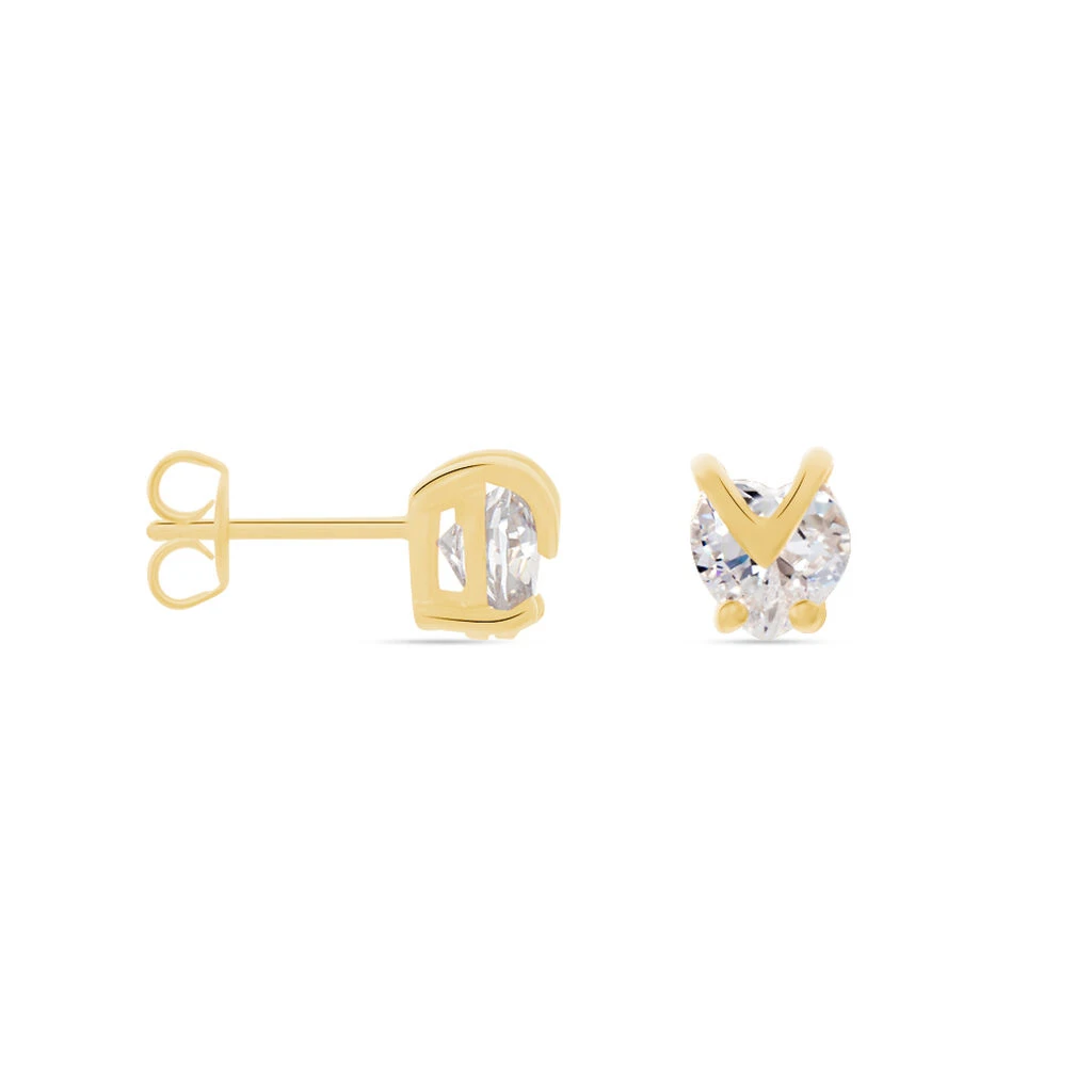 Boucles D’oreilles Puces Plaqué Or Jaune Coeurs Oxydes De Zirconium