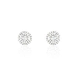 Boucles D’oreilles Or Blanc 375/1000 Puces Double Entourages Oxydes De Zirconium