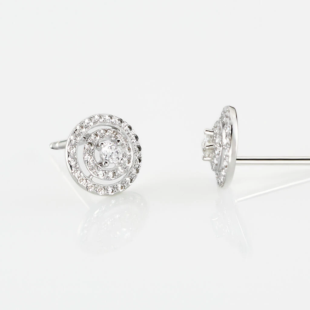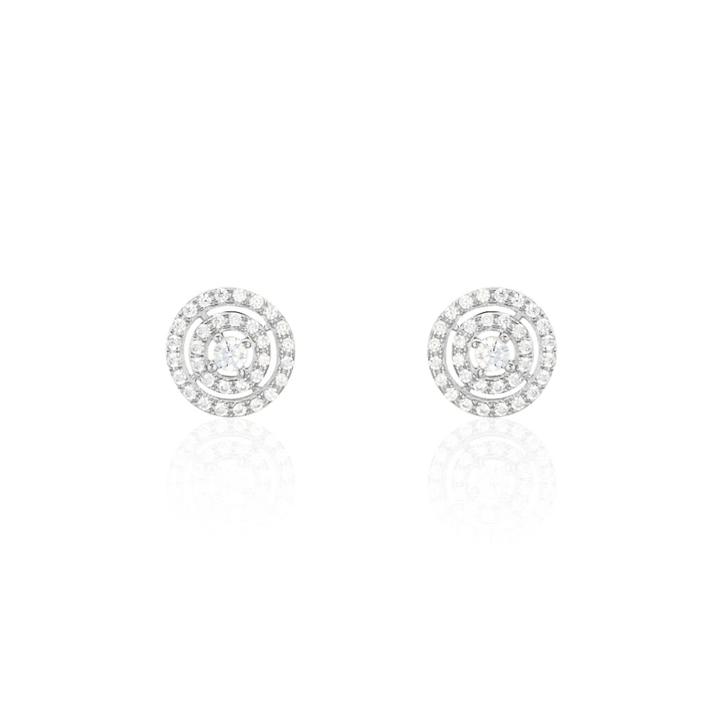 Boucles D’oreilles Puces Adriana Rond Or Blanc Oxyde De Zirconium