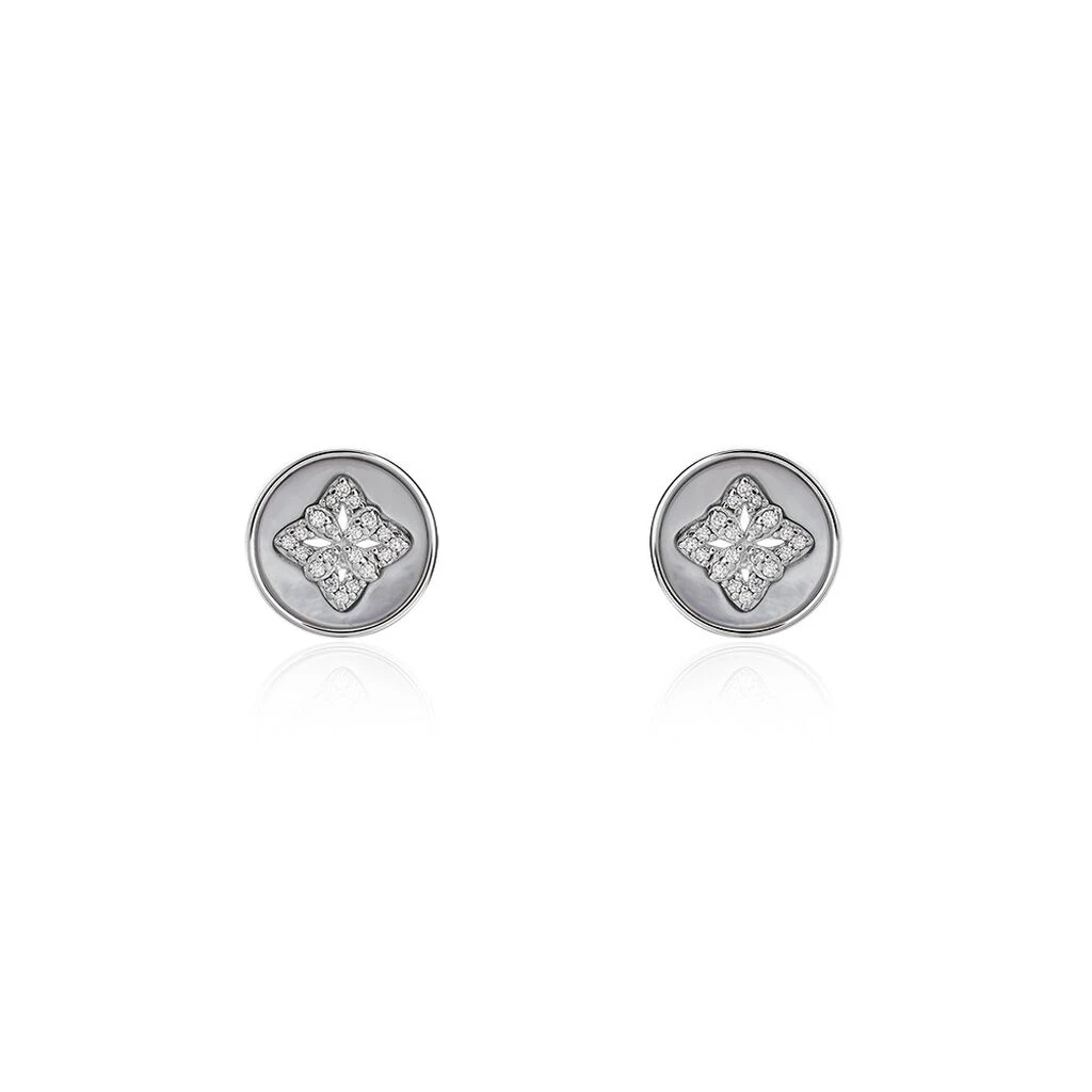 Boucles D’oreilles Puces Alexine Argent Blanc Oxyde De Zirconium