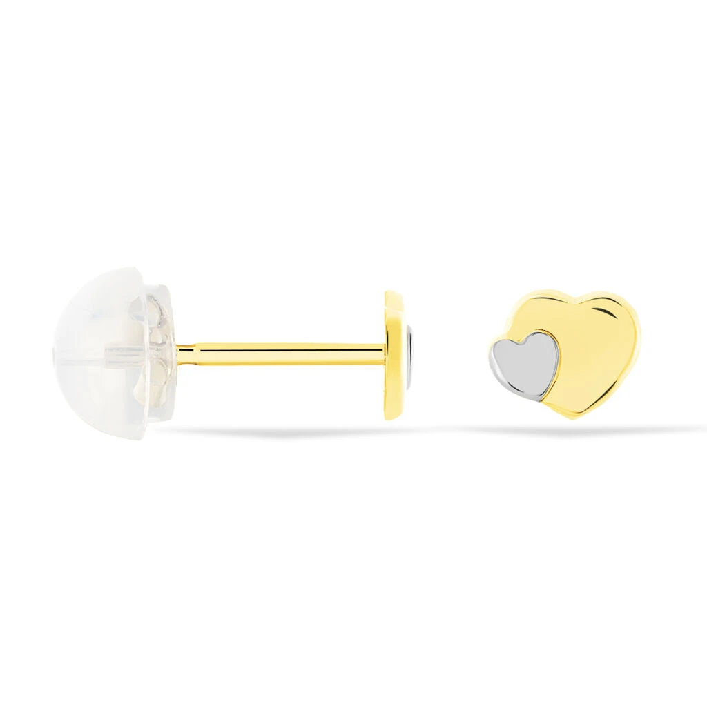 Boucles D’oreilles Or Bicolore 375/1000 Puces Formes Doubles Cœurs