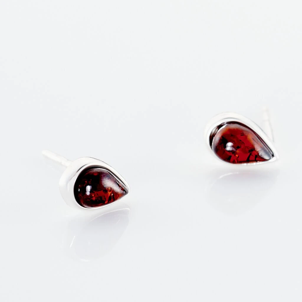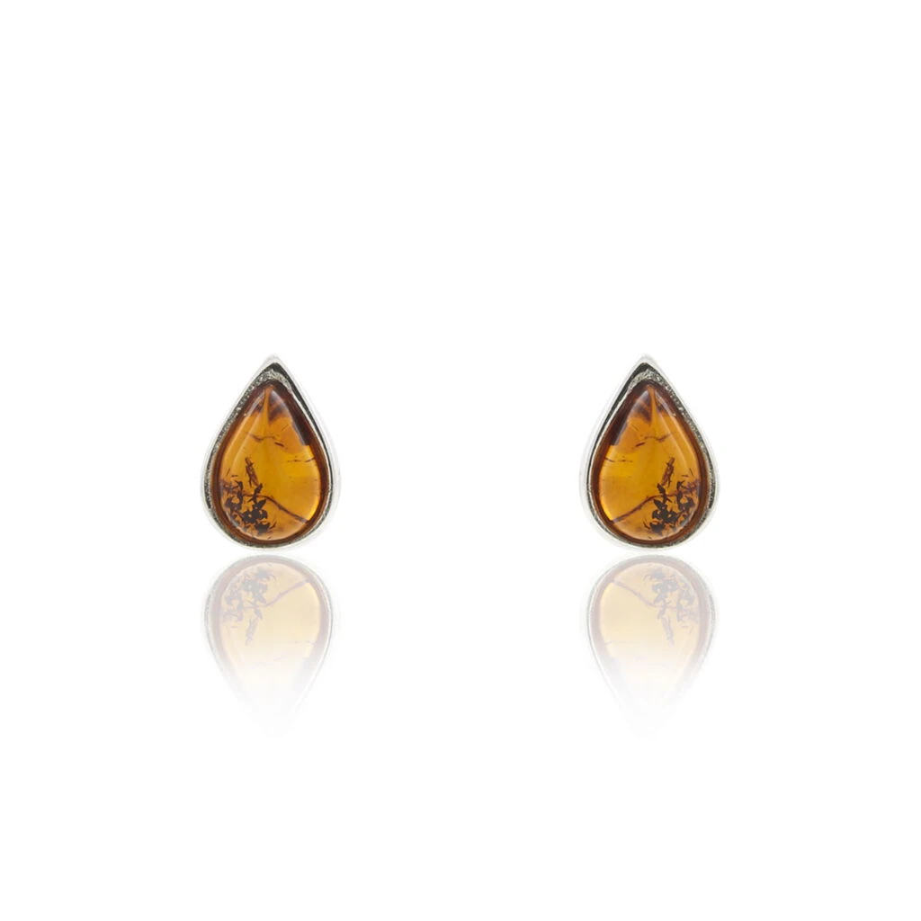 Boucles D’oreilles Puces Argent Blanc 925/1000 Formes Gouttes Ambre Entourees D’argent