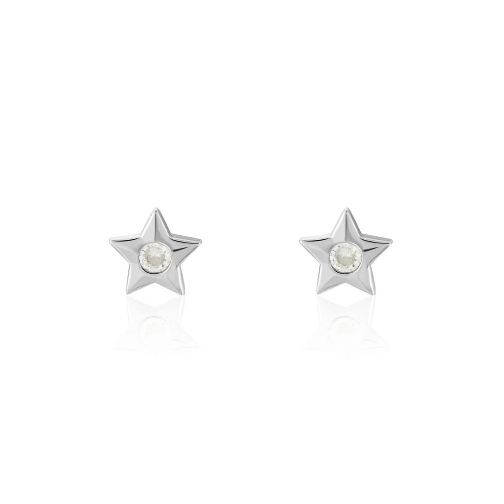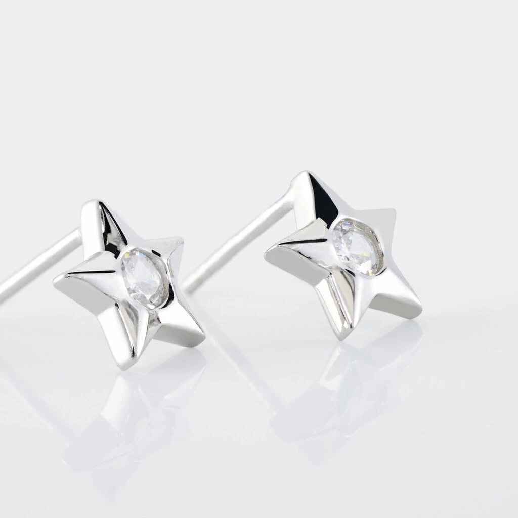 Boucles D’oreilles Puces Argent 925/1000 Etoile Sertis Clos 1 Oxyde De Zirconium