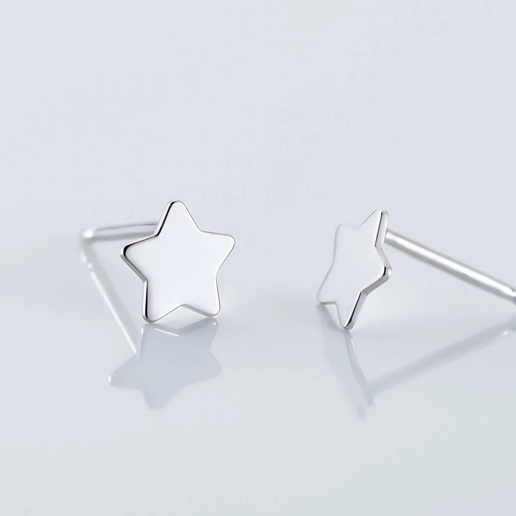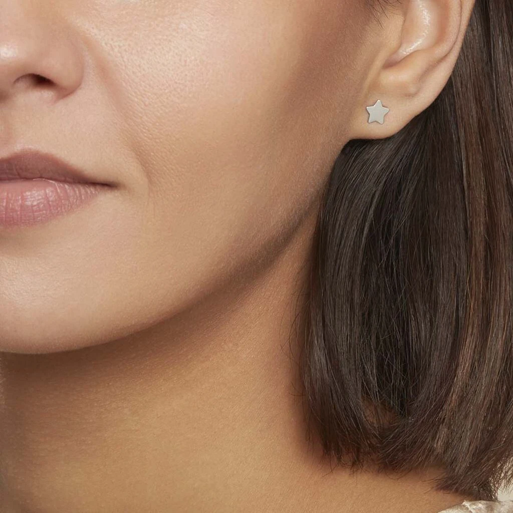 Boucles D’oreilles Puces Argent Blanc 925/1000 Etoiles