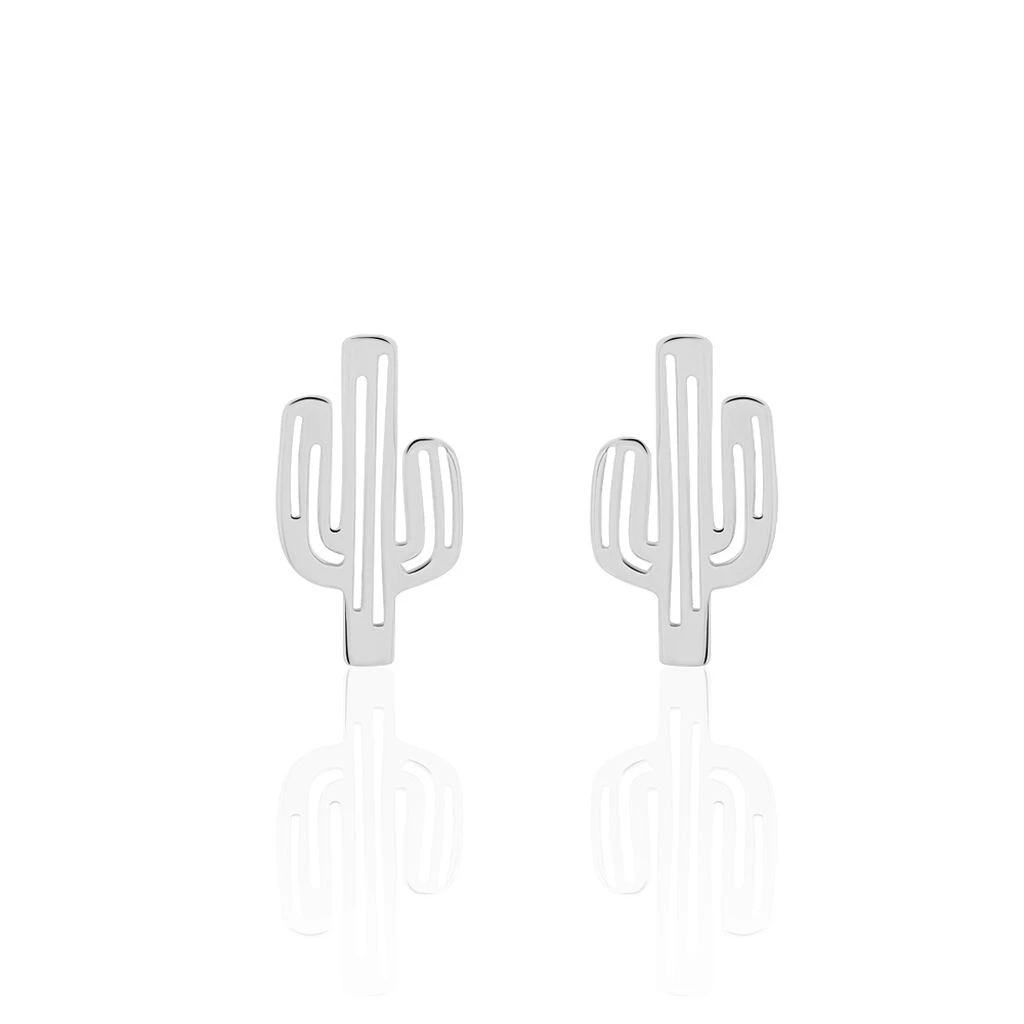 Boucles D’oreilles Argent 925/1000 Puces Motifs Cactus