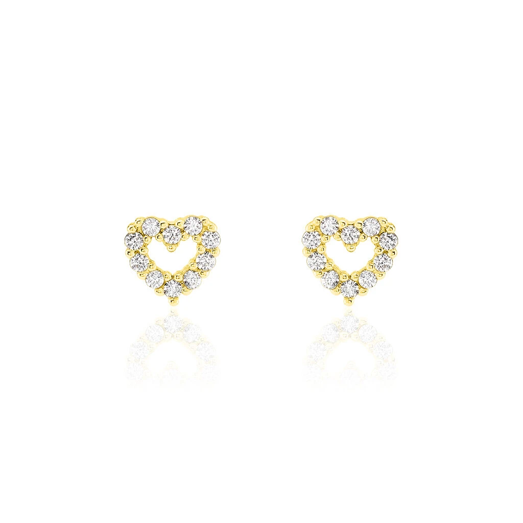 Boucles D’oreilles Puces Coeur Ajoure Or Jaune Oxyde De Zirconium