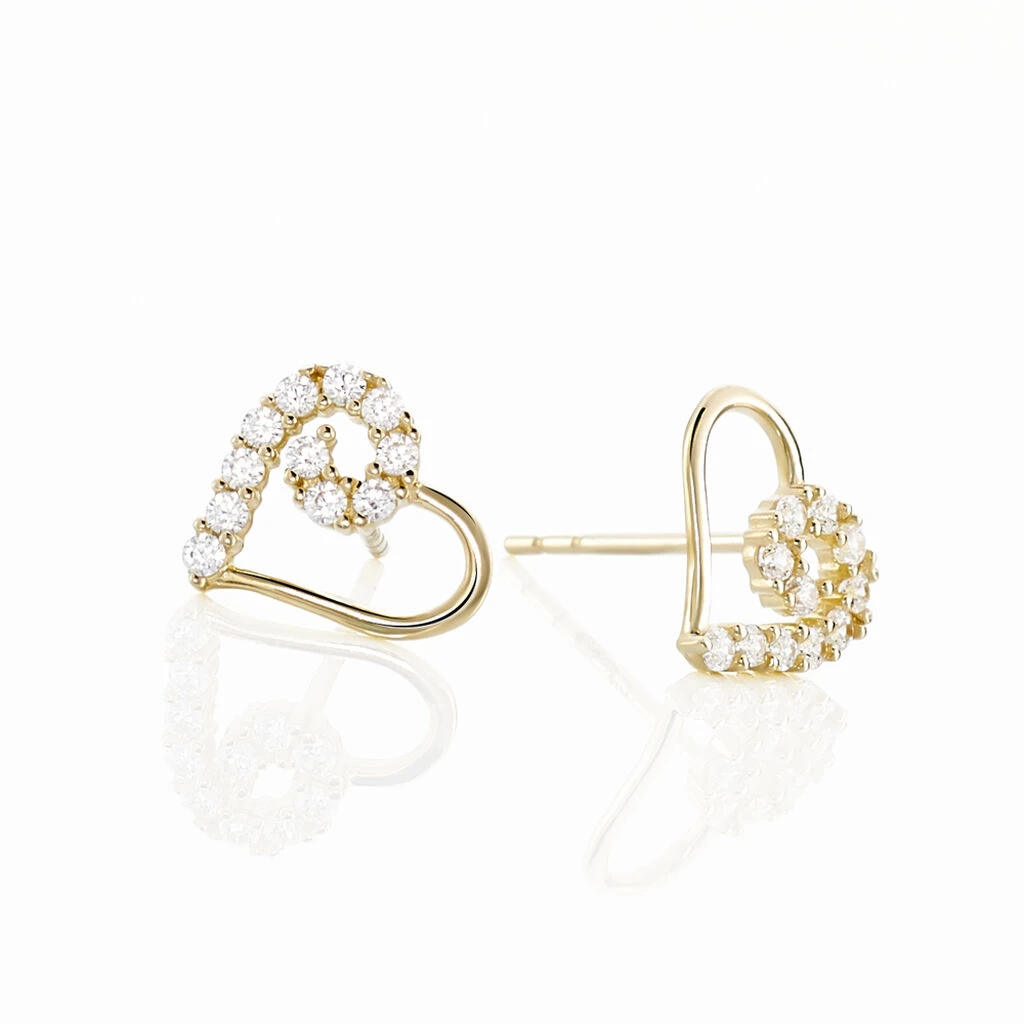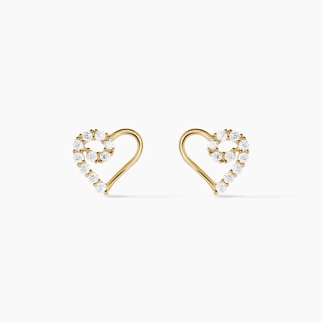 Boucles D’oreilles Puces Daria Cœur Or Jaune Oxyde De Zirconium