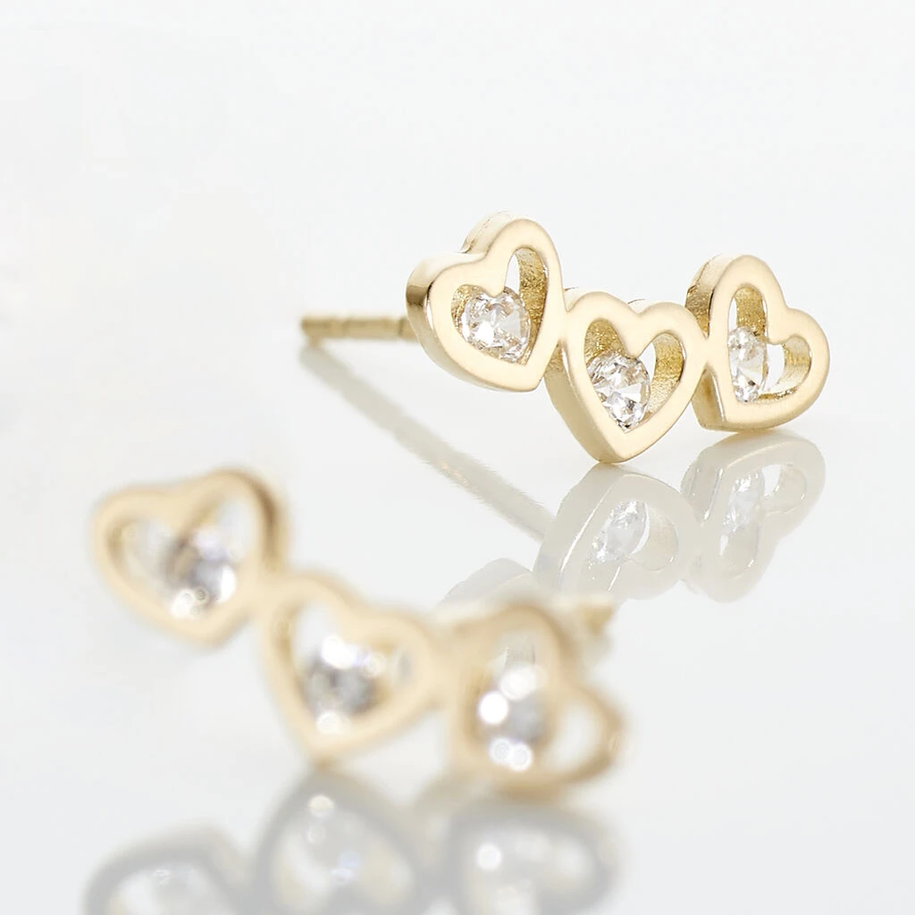 Boucles D’oreilles Puces Daria Coeur Triple Or Jaune Oxyde