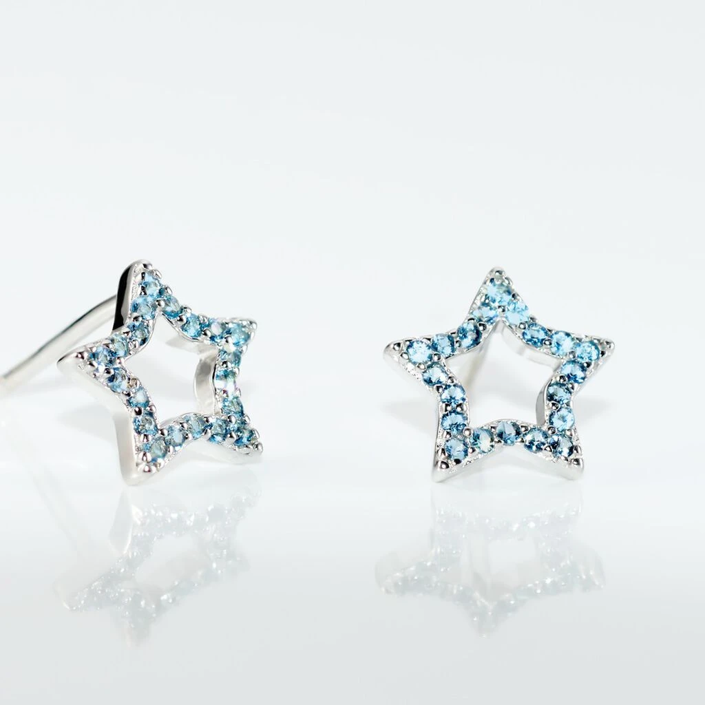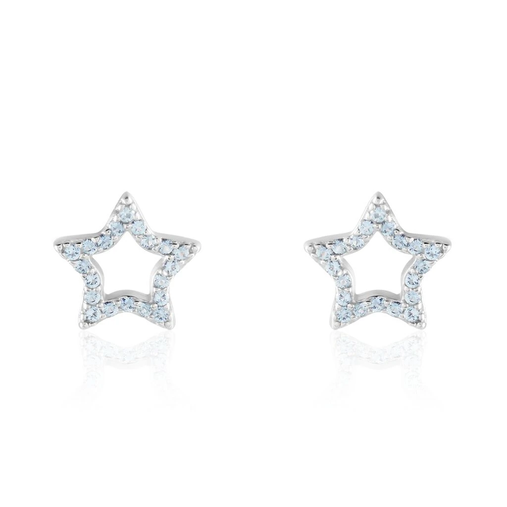Boucles D’oreilles Puces Argent Blanc 925/1000 Etoiles Micro Setting Oxydes De Zirconium Bleu Ciel