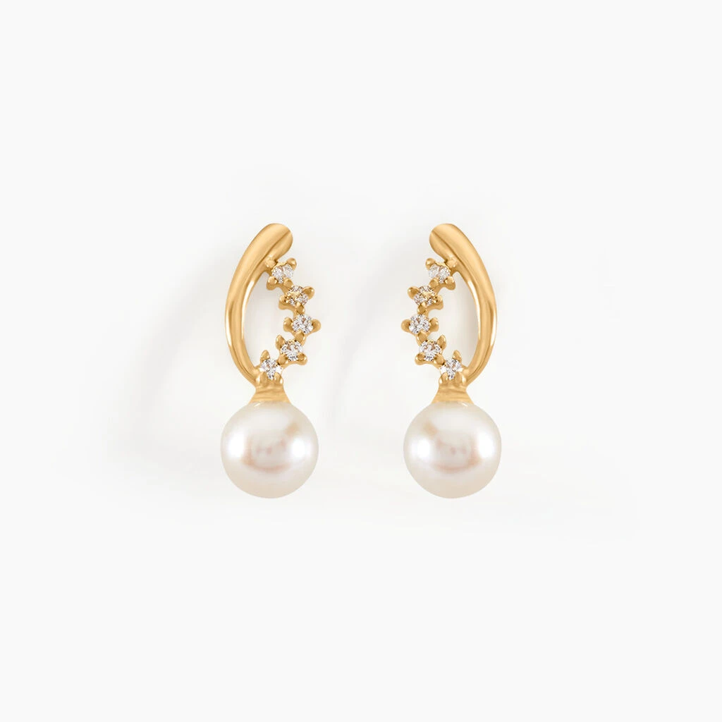 Boucles D’oreilles Puces Or Jaune 375/1000 Amandes Perles De Culture 4mm Et Oxydes De Zirconium