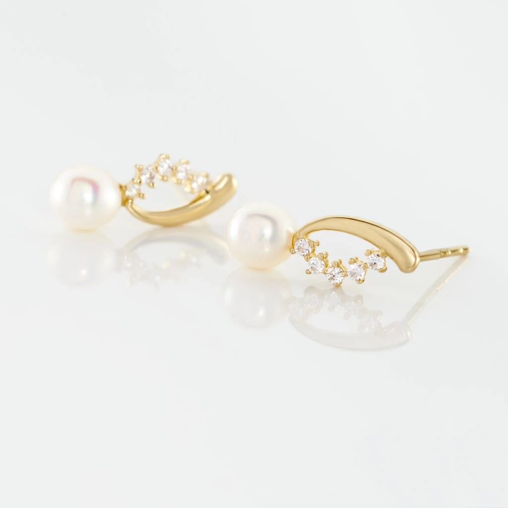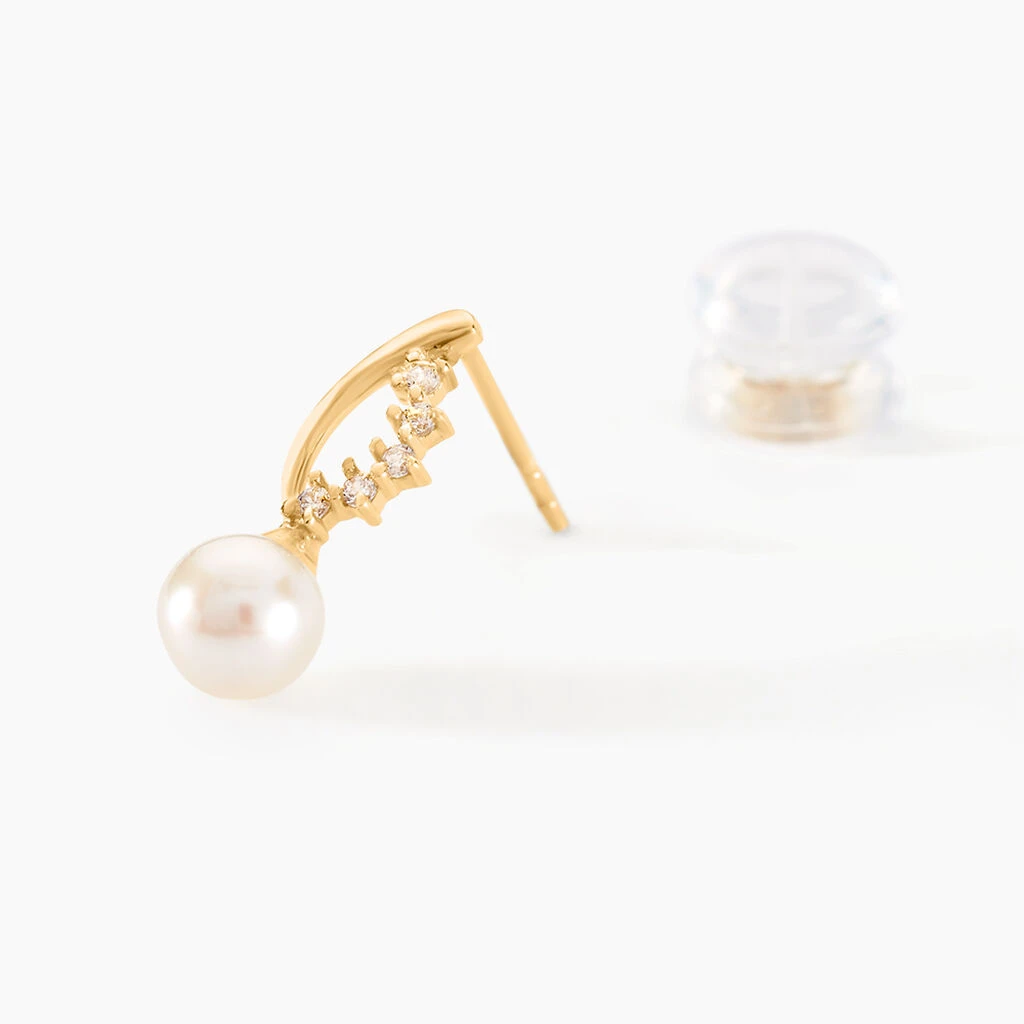 Boucles D’oreilles Puces Dominga Or Jaune Perle De Culture Et Oxyde
