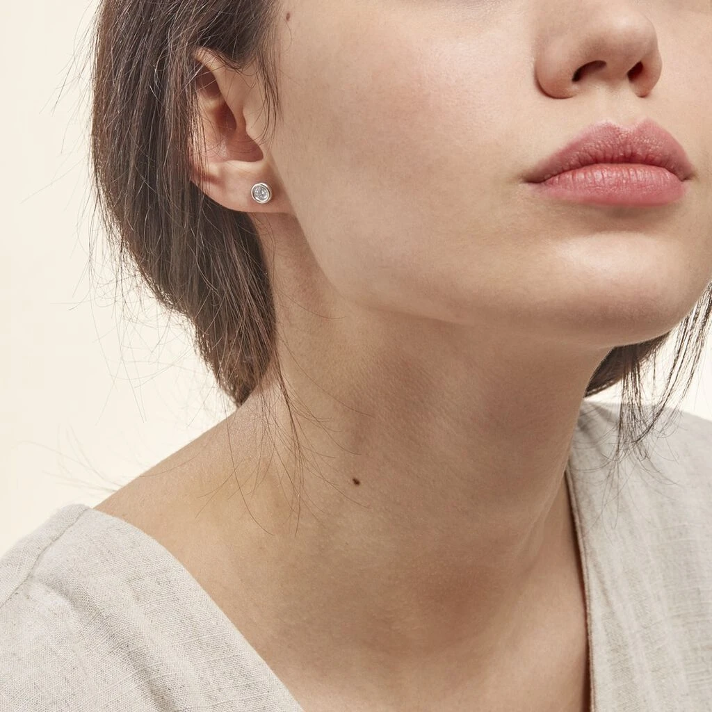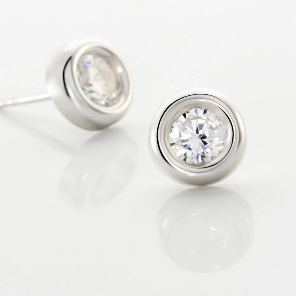 Boucles D’oreilles Puces Eden Serti Pneu Or Blanc Oxyde De Zirconium
