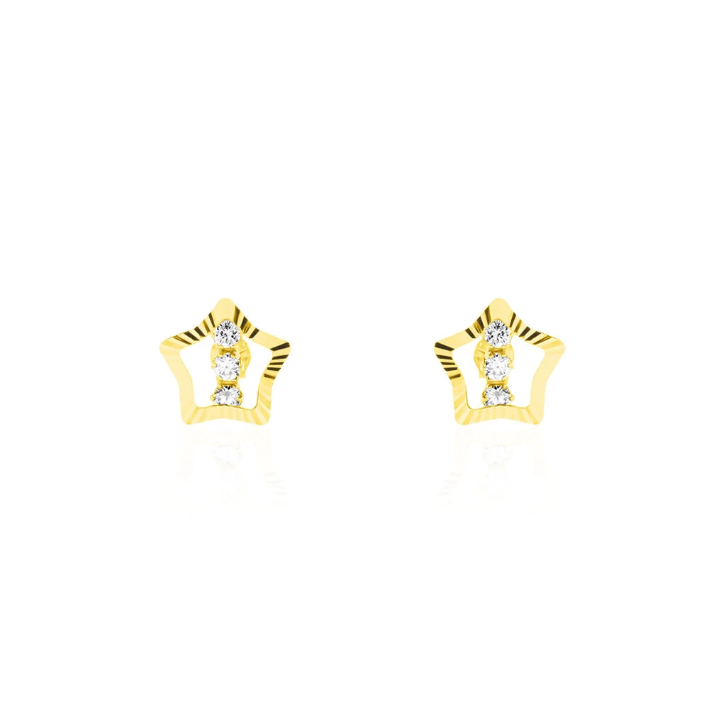 Boucles D’oreilles Puces Or Jaune 375/1000 Forme Etoiles Oxydes De Zirconium Largeur 6mm